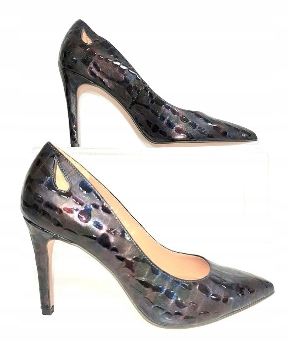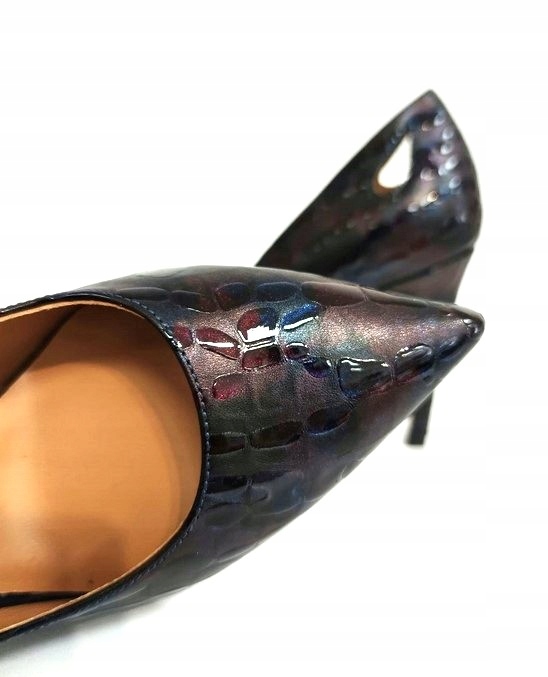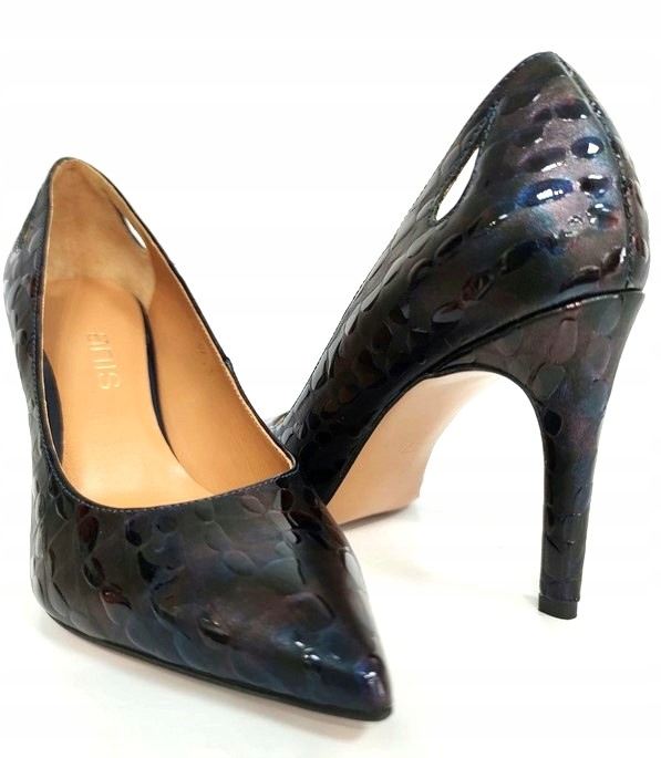 Bardzo kobiece i efektowne skórzane czółenka firmy ANIS w pięknych kolorach granatu, borda i fioletu.