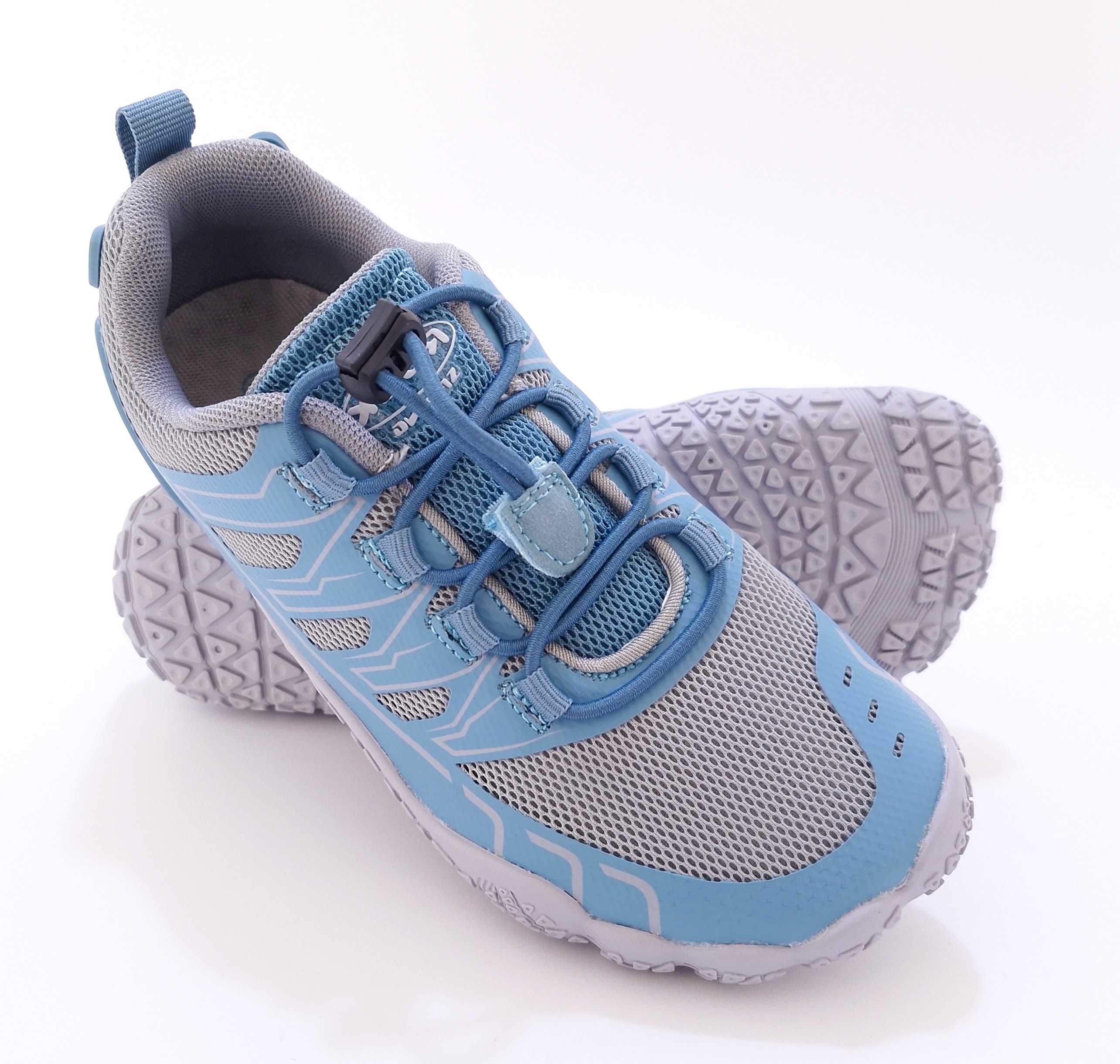 Lekkie i wygodne buty sportowe typu Barefoot marki Rock Spring zaprojektowane z myślą o kobietach ceniących komfort i zdrowie stóp. Cholewka wykonana z połączenia siateczki i materiałów syntetycznych doskonale dopasowuje się do stopy, zapewniając pełną wentylację w letnie dni. Elastyczna, antyposlizgowa podeszwa pokryta bieżnikiem wspiera naturalny kontakt stopy z podłożem, umożliwiając zdrową pracę mięśni i poprawiając postawę. Dzięki ściąganym na troczek sznurówkom, dopasowanie obuwia do stopy jest szybkie i bezproblemowe. Subtelny niebieski kolor nadaje całości sportowego, ale i kobiecego charakteru.