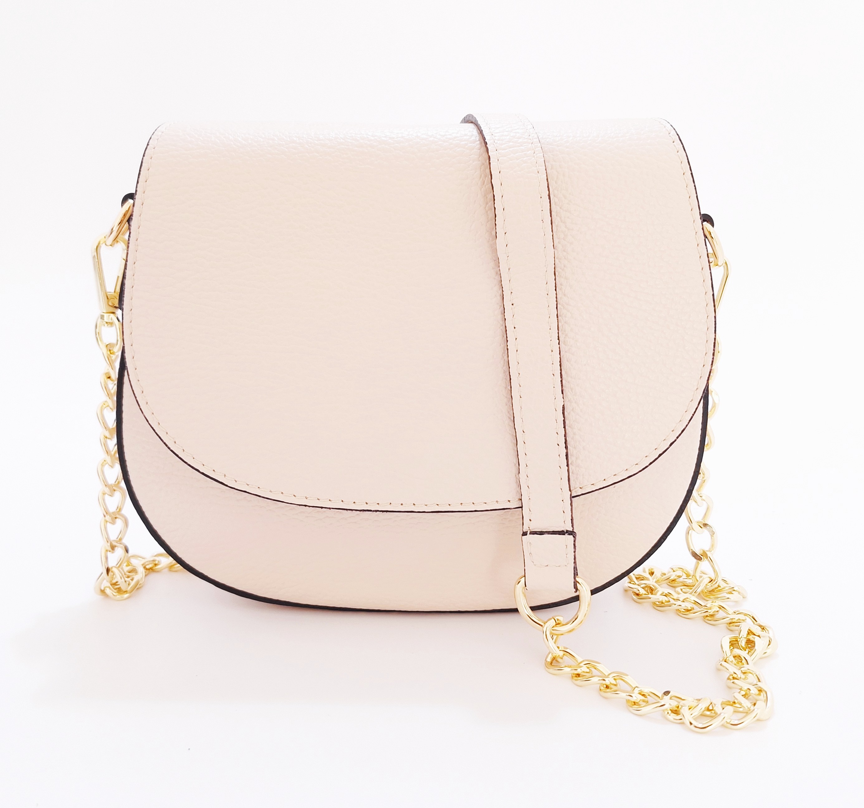 Skórzana listonoszka damska z klapką to model, który pasuje do niemal każdej stylizacji eleganckiej oraz casualowej. Torebka zamykana jest klapką na zatrzask. Wykonana z wysokiej jakości beżowej naturalnej skóry. Torebka ma pojemną komorę wykończoną podszewką zamykana jest na suwak. Listonoszka pasuje do codziennej oraz wyjściowej stylizacji. Torebka posiada długi łańcuszek,dzięki czemu można ją dopasować do swoich potrzeb.