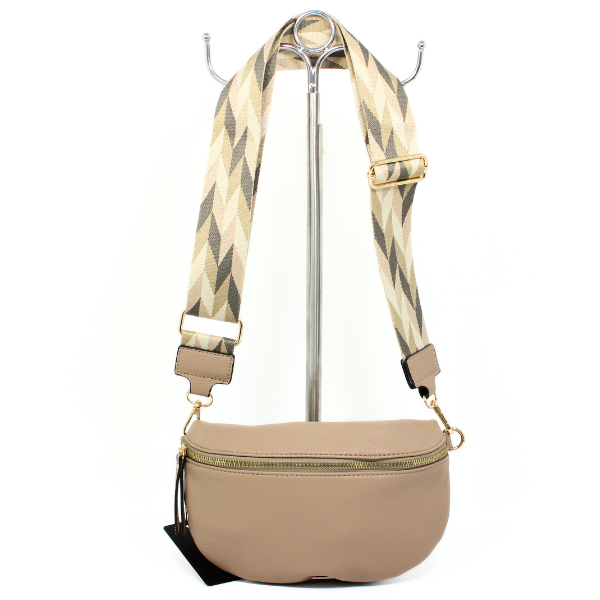 Beżowa torebka typu nerka Flora&Co na szerokim pasku H3668