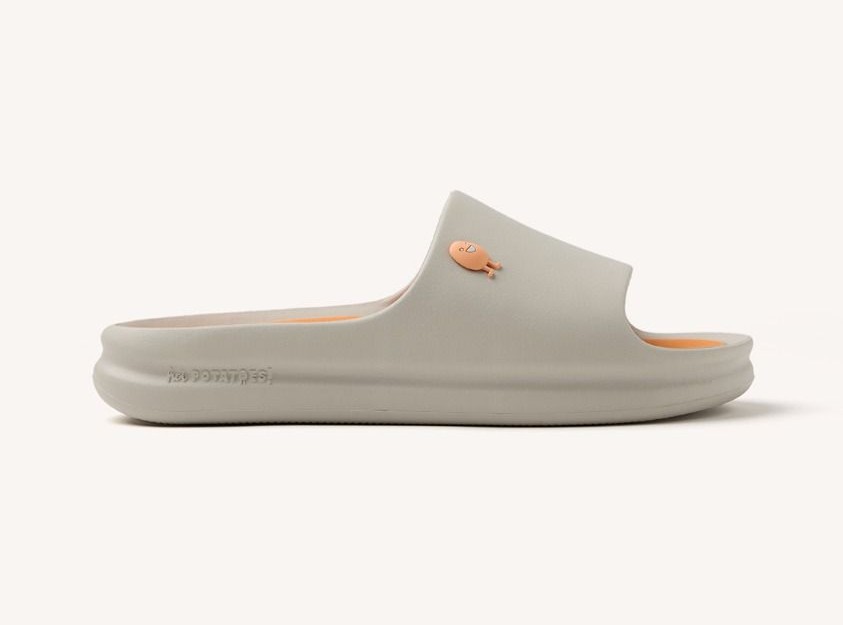 - Wygodne klapki Hot Potatoes w kolorze beżowym z wymiennymi wkładkami i uroczą aplikacją ziemniaczka. Idealne na lato i do chodzenia po domu!