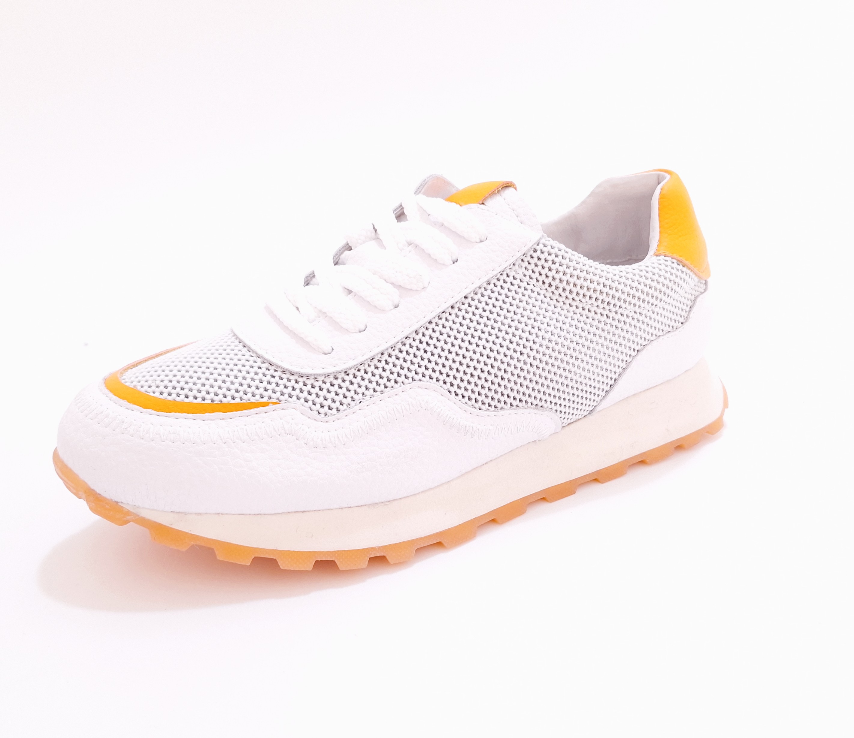 Białe sneakersy damskie z pomarańczową wstawką Cambell 00596WH r.37