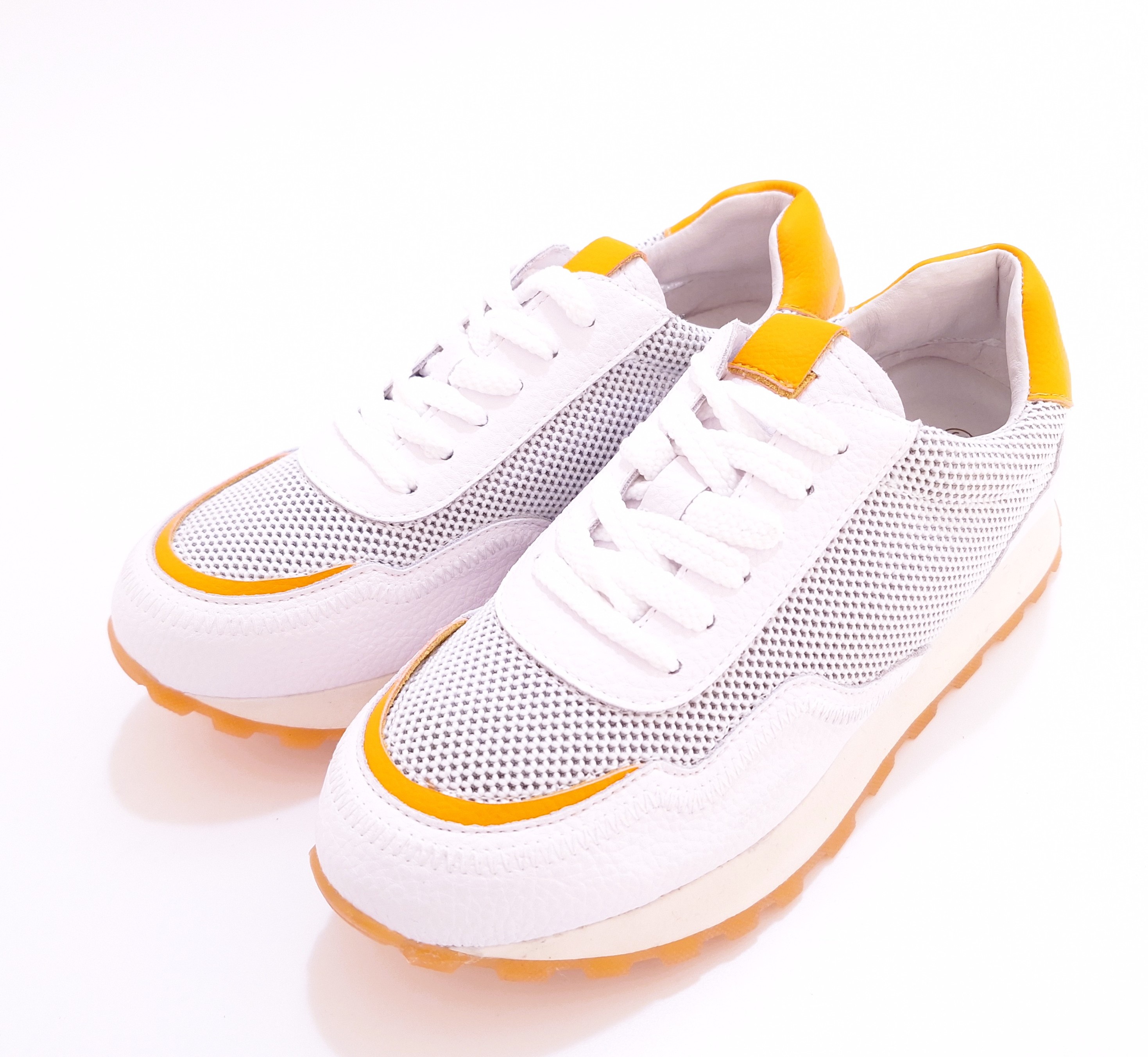 Białe sneakersy damskie z pomarańczową wstawką Cambell 00596WH r.39
