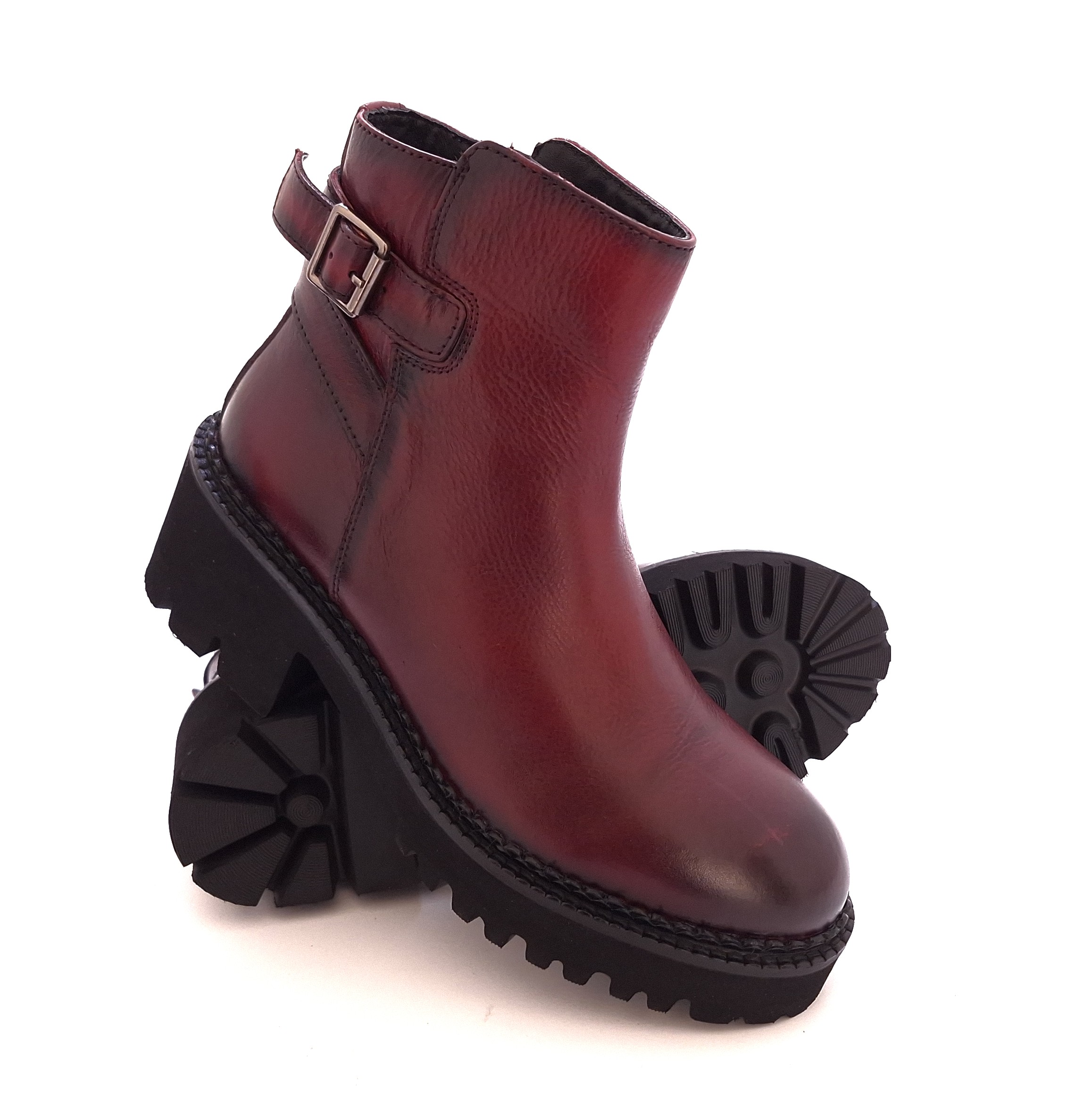 - botki wykonano z naturalnej skóry w bordowym kolorze,