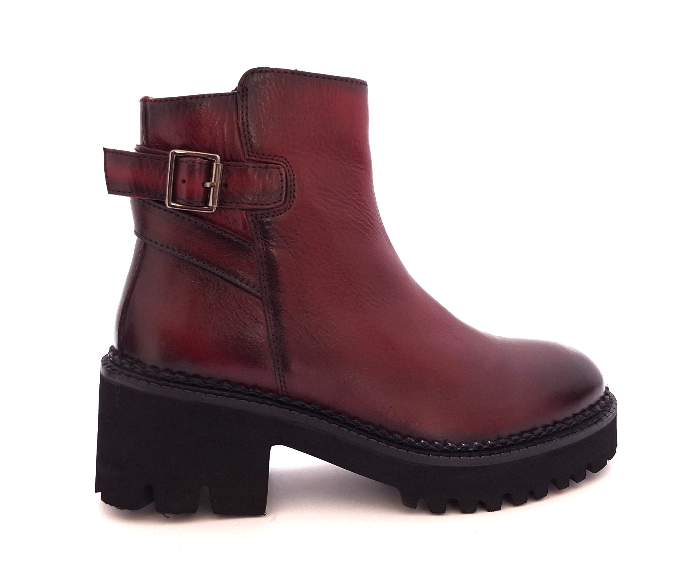 - botki wykonano z naturalnej skóry w bordowym kolorze,