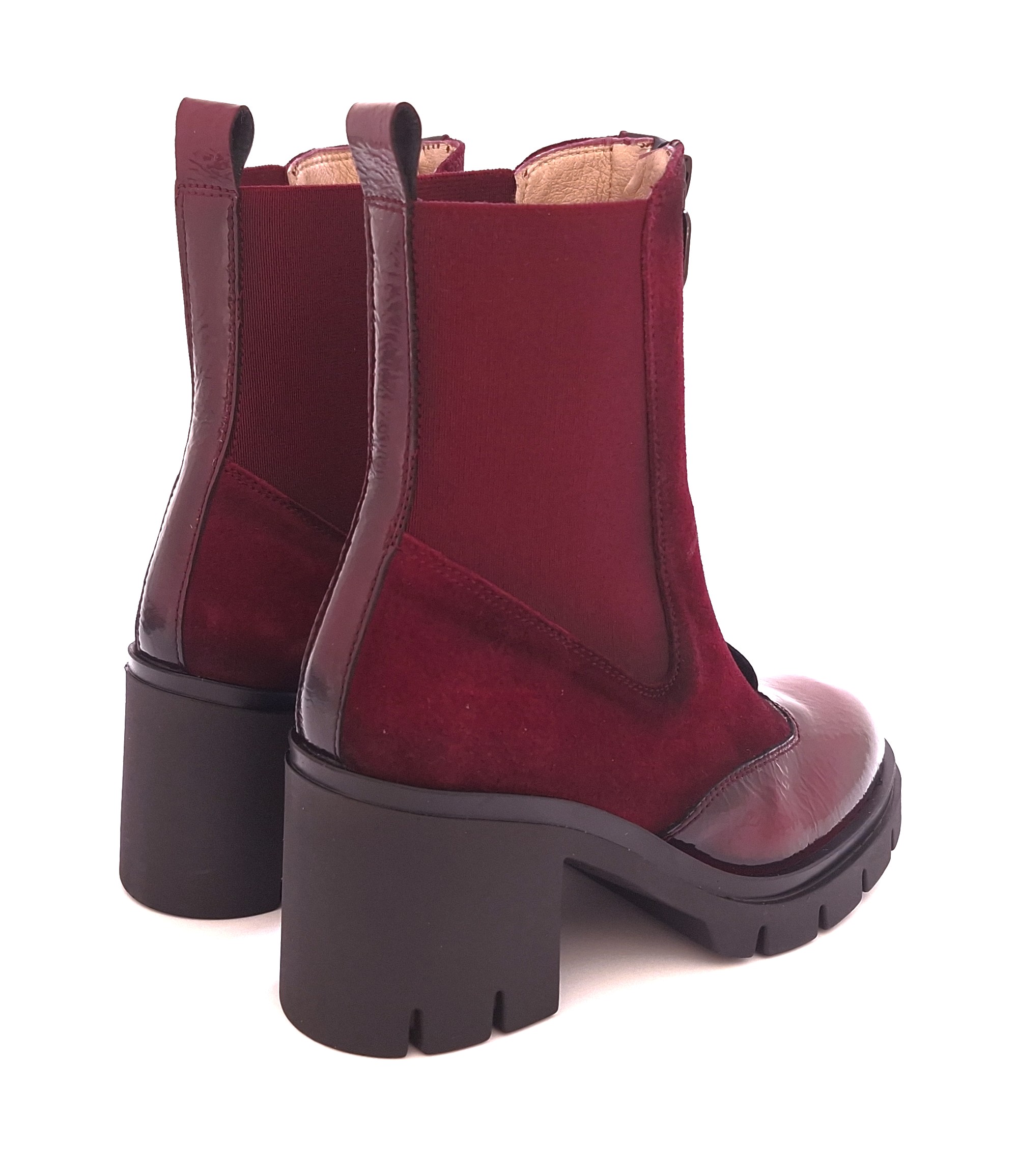 Stylowe botki damskie na platformie Hispanitas to idealna propozycja dla kobiet, które cenią sobie modny wygląd i wygodę. Wykonane z najwyższej jakości skóry naturalnej w eleganckim, bordowym odcieniu. Dwutonowa faktura skóry – zestawienie lakierowanej skóry z miękkim zamszem – nadaje modelowi nowoczesny, designerski wygląd. Praktyczny zamek błyskawiczny umieszczony z przodu cholewki ułatwia szybkie zakładanie i zdejmowanie botków, a elastyczne wstawki po bokach pozwalają na idealne dopasowanie do nogi. Szeroki, stabilny obcas oraz gruba platforma z wyrazistym bieżnikiem gwarantują doskonałą przyczepność i komfort podczas codziennego użytkowania Cholewka została uzupełniona praktycznym zamkiem, który ułatwia zakładanie.
