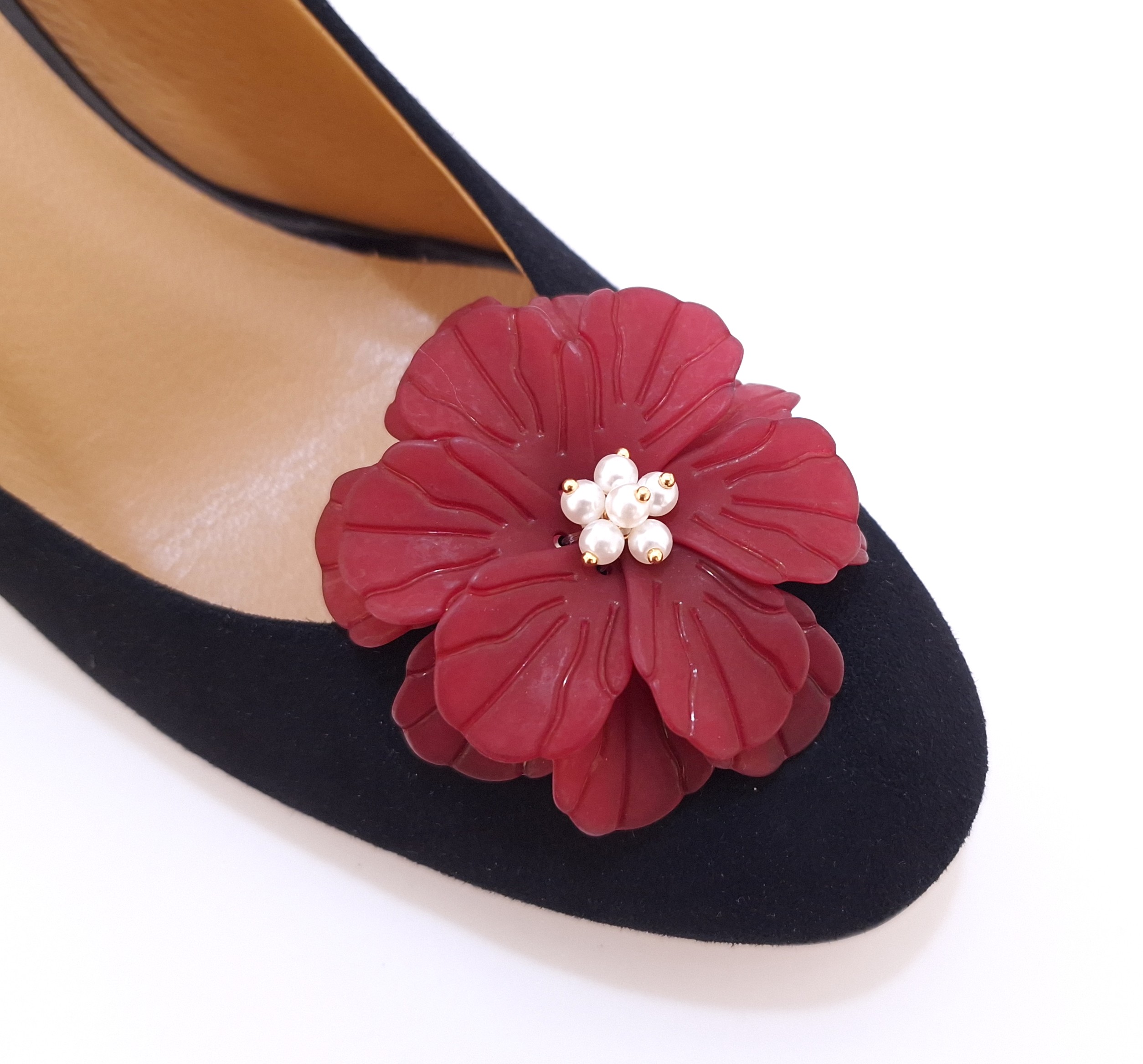 Bordowy kwiat do butów z aplikacją 2 szt