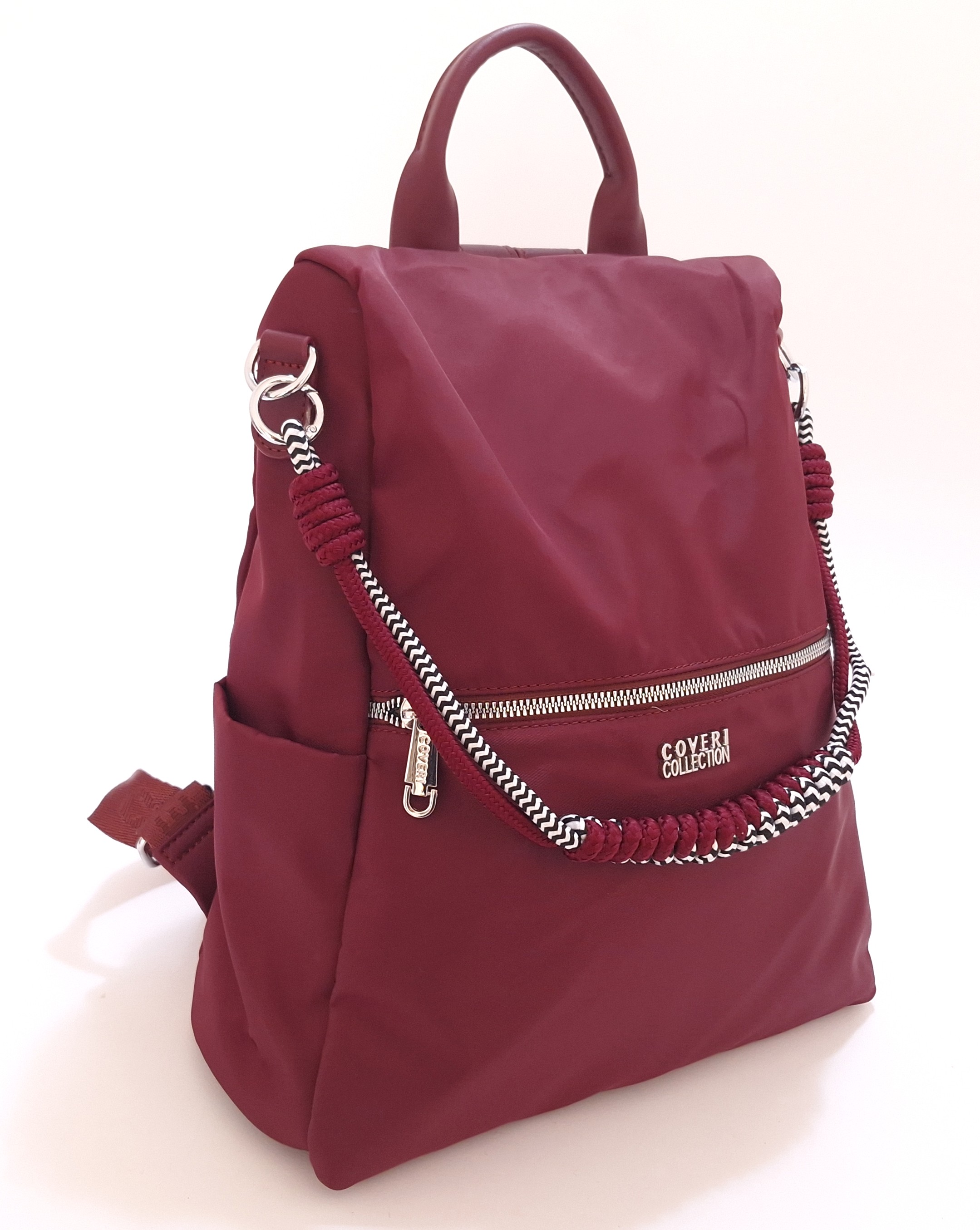Plecak damski z kieszenią antykradzieżową włoskiej marki Coveri Colection to idealne połączenie modnego designu i praktycznych rozwiązań na co dzień. Dzięki funkcji antykradzieżowej zawartość Twoich rzeczy jest bezpieczna – główna komora otwierana jest wyłącznie od strony pleców, co skutecznie chroni przed dostępem osób niepowołanych. Model wyposażony jest w regulowane szelki oraz wygodną krótką rączkę do noszenia, zapewniając wygodę i komfort przez cały dzień. Praktyczna przednia kieszeń na zamek pozwala mieć drobiazgi zawsze pod ręką. Wykonany z materiału poliestrowego w bordowym kolorze, co gwarantuje jego trwałość i odporność na uszkodzenia.