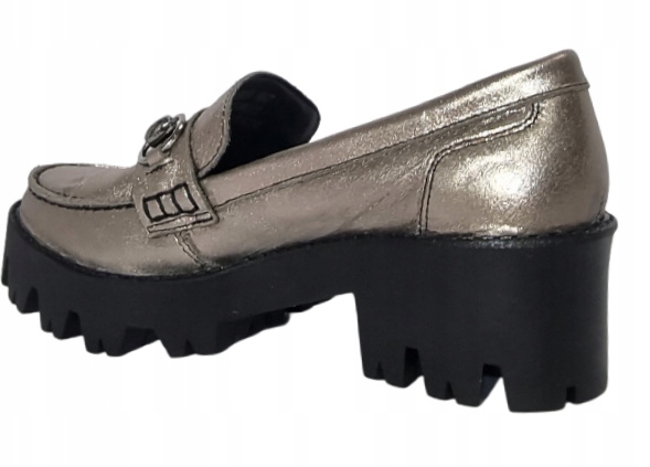 Obuwie wykonane zostało z naturalnej skóry.Grubsza podeszwa na 5cm obcasie zapewni odpowiednią przyczepność.Te półbuty doskonale skomponują się zarówno ze spodniami, jak i sukienką.