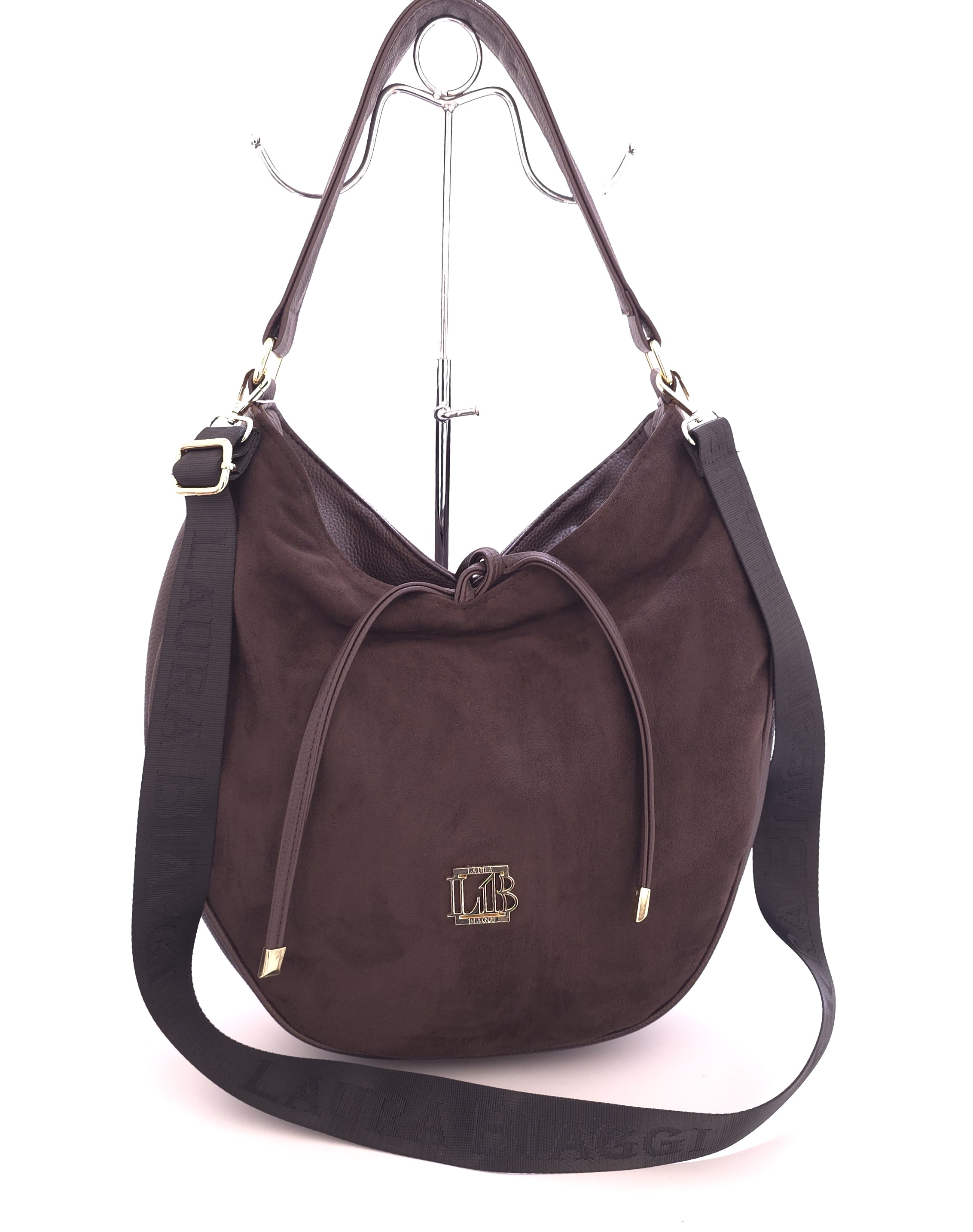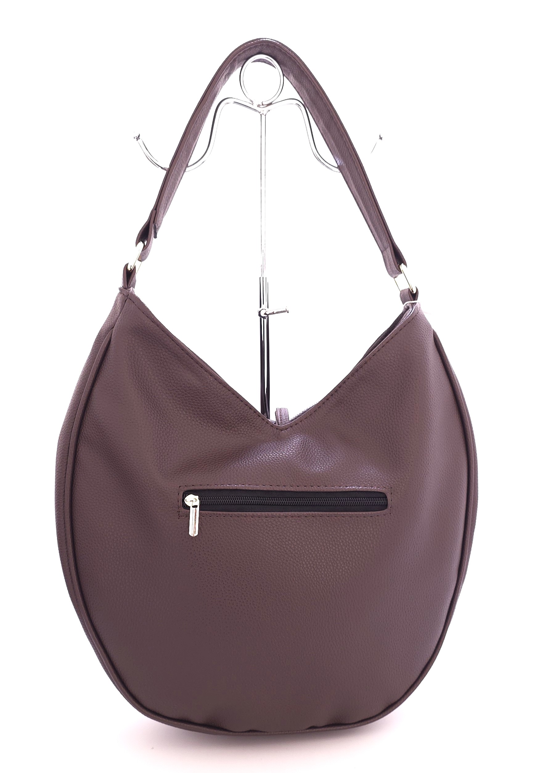 Praktyczna torebka damska typu hobo marki Laura Biaggi to połączenie klasyki z nowoczesnością. Wykonana ze skóry ekologicznej w ciepłym, brązowym odcieniu. Front torebki ozdobiono delikatnym zamszowym wykończeniem. Jednokomorowy model, zamykany na zamek błyskawiczny gwarantuje swobodne przechowywanie przedmiotów. Z tyłu znajduje się kieszeń na suwak. Torebka wyposażona jest w uchwyt do noszenia w dłoni lub na ramieniu. Dodatkowo dołączony szeroki, regulowany pasek do noszenia na ukos, co zwiększa jej funkcjonalność.