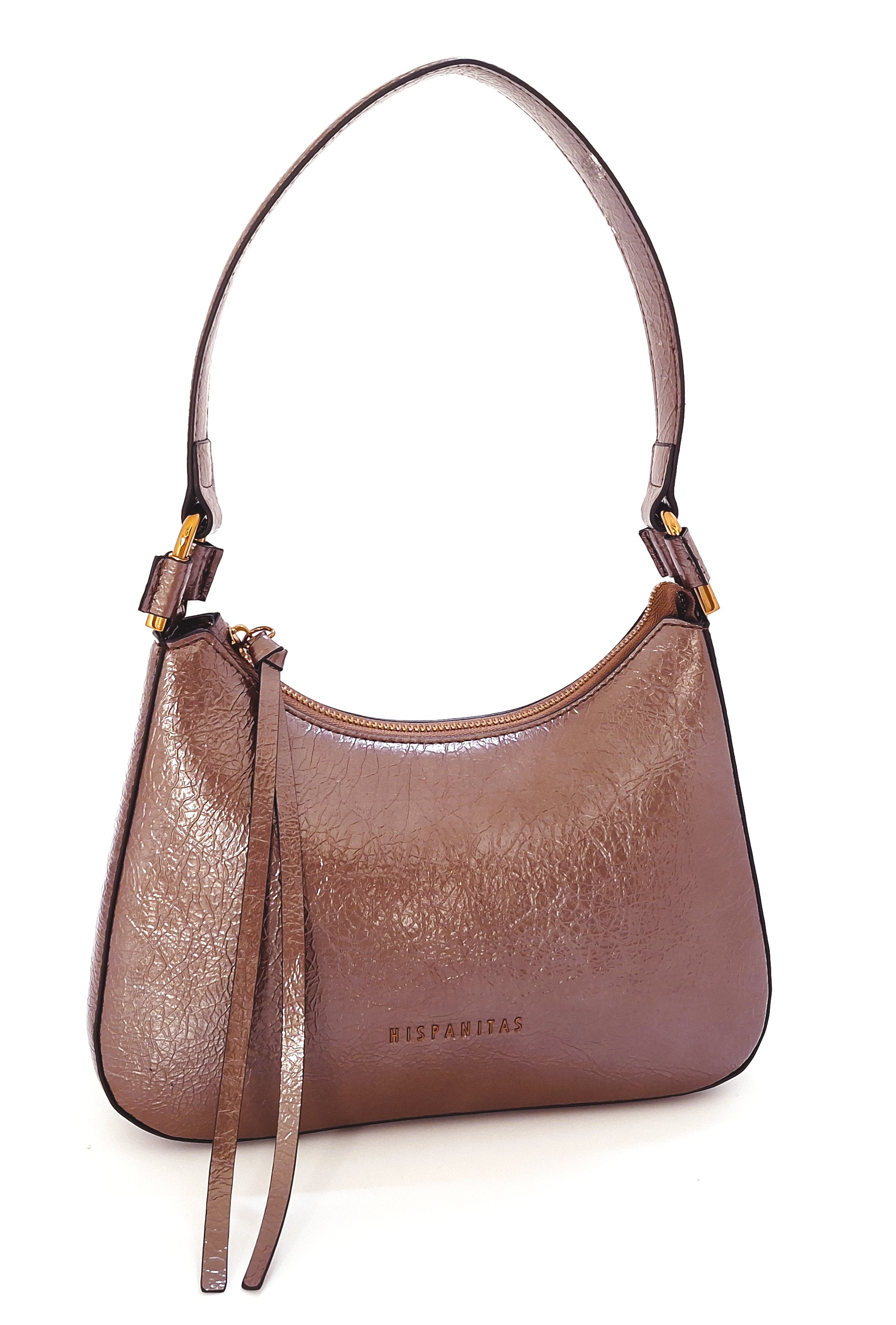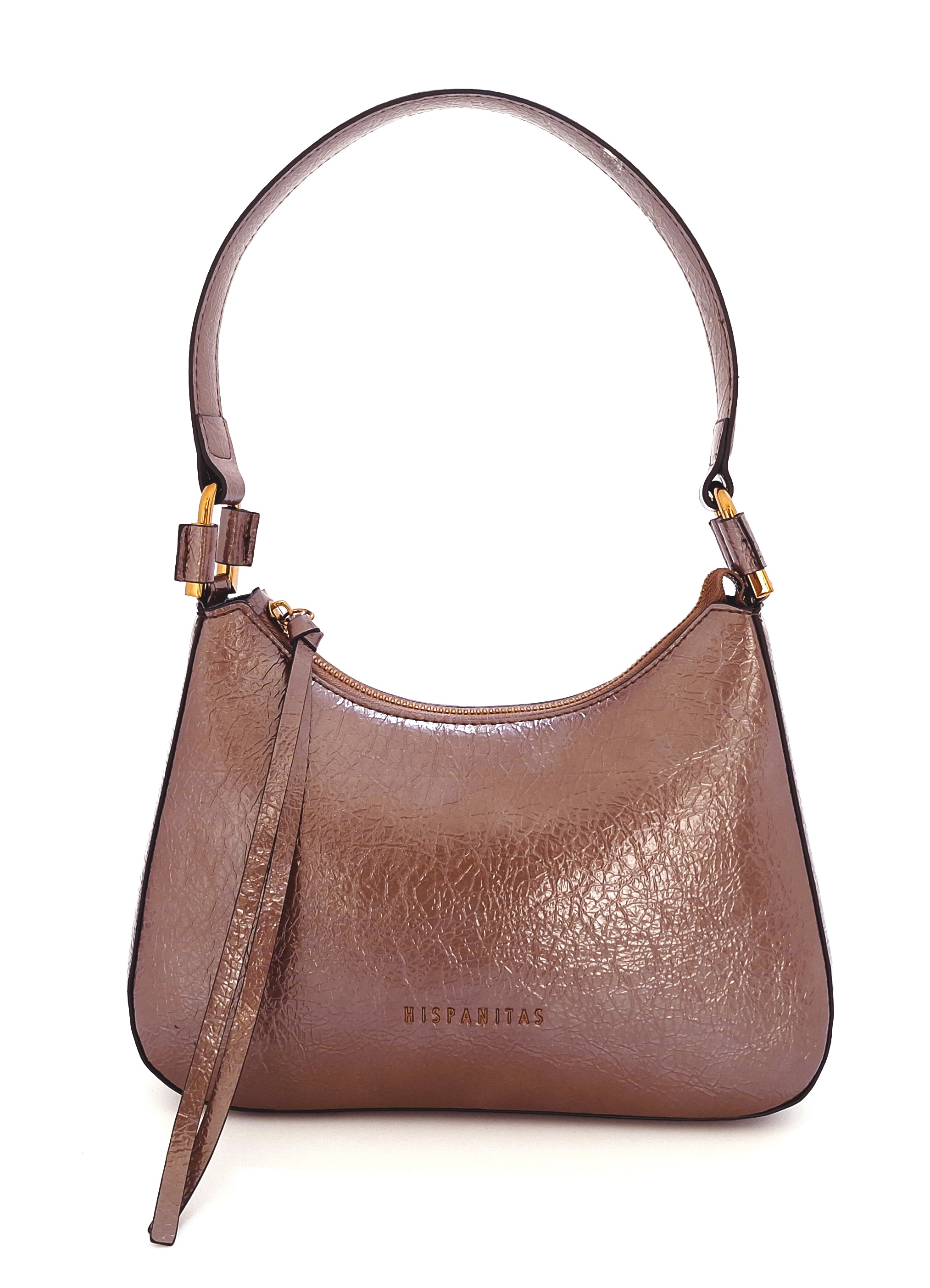 Torebka damska w stylu baguette marki Hispanitas, wykonana z wysokiej jakości skóry ekologicznej o eleganckim, brązowym odcieniu z subtelnym połyskiem. Model posiada wygodny uchwyt na ramię oraz regulowany, odpinany pasek, dzięki czemu można nosić ją na kilka sposobów. Zapinana na zamek komora główna pomieści wszystkie niezbędne drobiazgi. Subtelne logo marki na froncie podkreśla ekskluzywny charakter torebki.