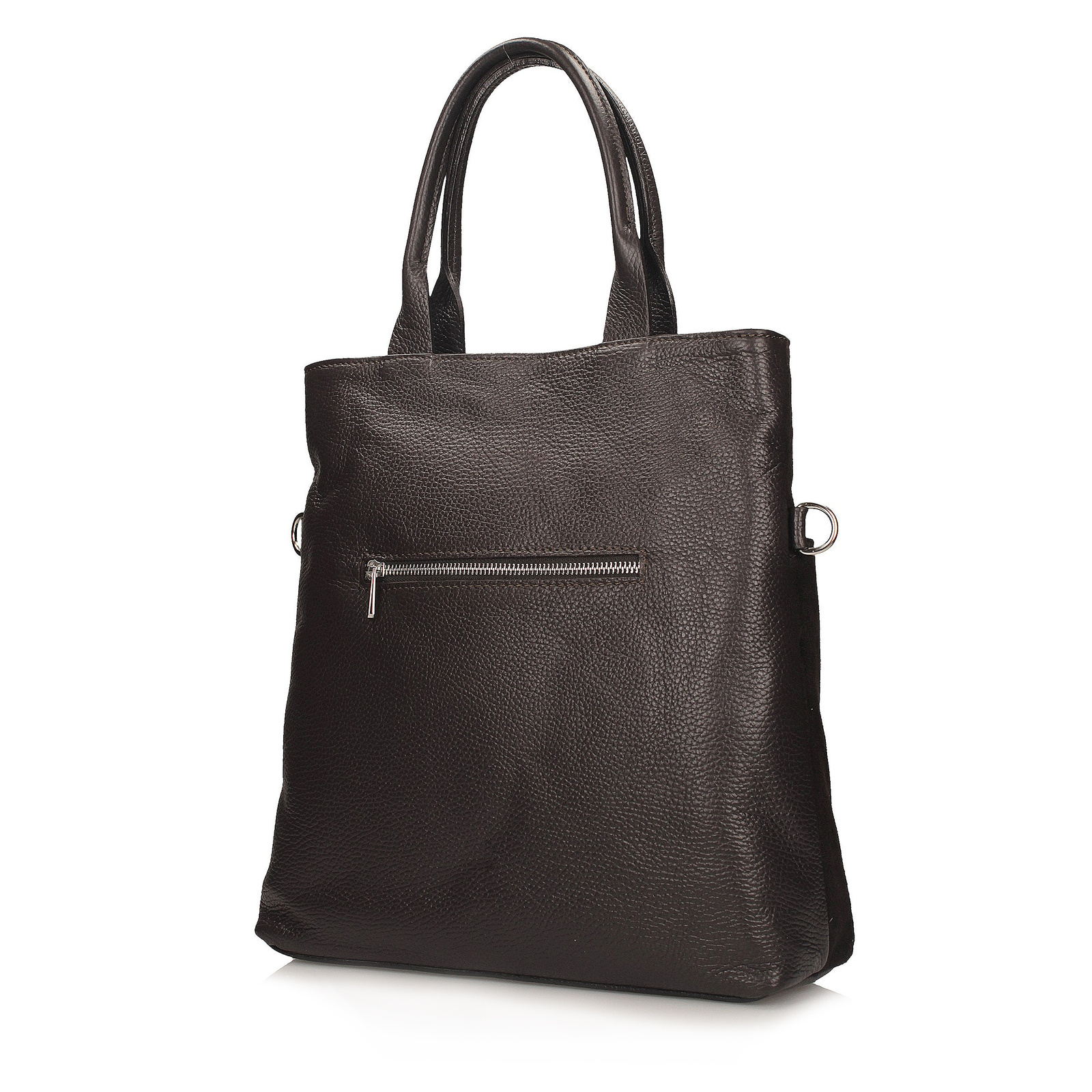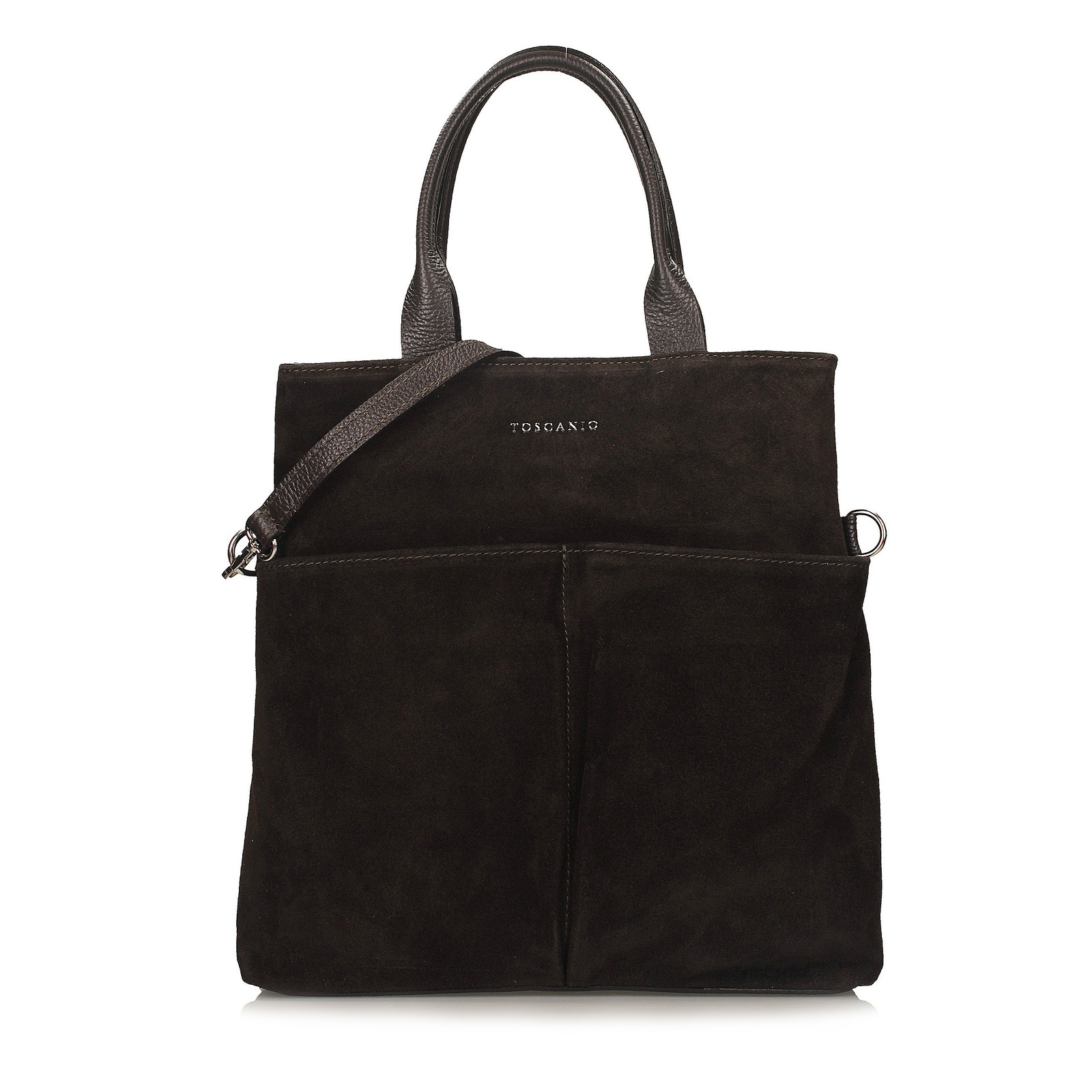 Torebka damska na ramię marki Toscanio to połączenie klasyki i zarazem elegancji. Wykonana z wysokiej jakości skóry naturalnej w odcieniu czekoladowego brązu. Przód torebki wykonany z miękkiej zamszowej skóry. Model posiada jedną przestronną komorę główną, zapinaną na zamek błyskawiczny, a dodatkowe kieszonki - jedna zamykana na suwak oraz jedna otwarta - umożliwiają wygodne przechowywanie najpotrzebniejszych drobiazgów. Wyposażona w krótkie uchwyty do noszenia w dłoni oraz odpinany, regulowany pasek, dzięki czemu można ją wygodnie przewiesić przez ramię.