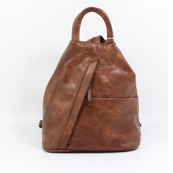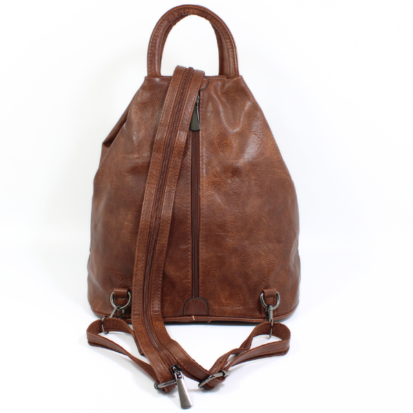 Brązowy damski plecak o oryginalnym trójkątnym kształcie stanowi znakomitą alternatywę dla klasycznej damskiej torebki. Wykonany został z ekologicznej skóry. W środku bez problemu zmieścisz wszystkie najpotrzebniejsze rzeczy. Dzięki regulowanym szelkom idealnie dopasujesz go do swojego wzrostu. Dodatkowo szelki mogą być złączone w jedną, tworząc elegancką torebkę na ramię, lub rozpięte na dwie, zapewniając komfortowe noszenie na plecach. Dopełnieniem jest rączka u góry, umożliwiająca łatwe przenoszenie w dłoni. Kompaktowy rozmiar sprawia, że plecak stanowi idealny wybór na podczas spaceru, wyjścia na zakupy, ale również na wycieczek