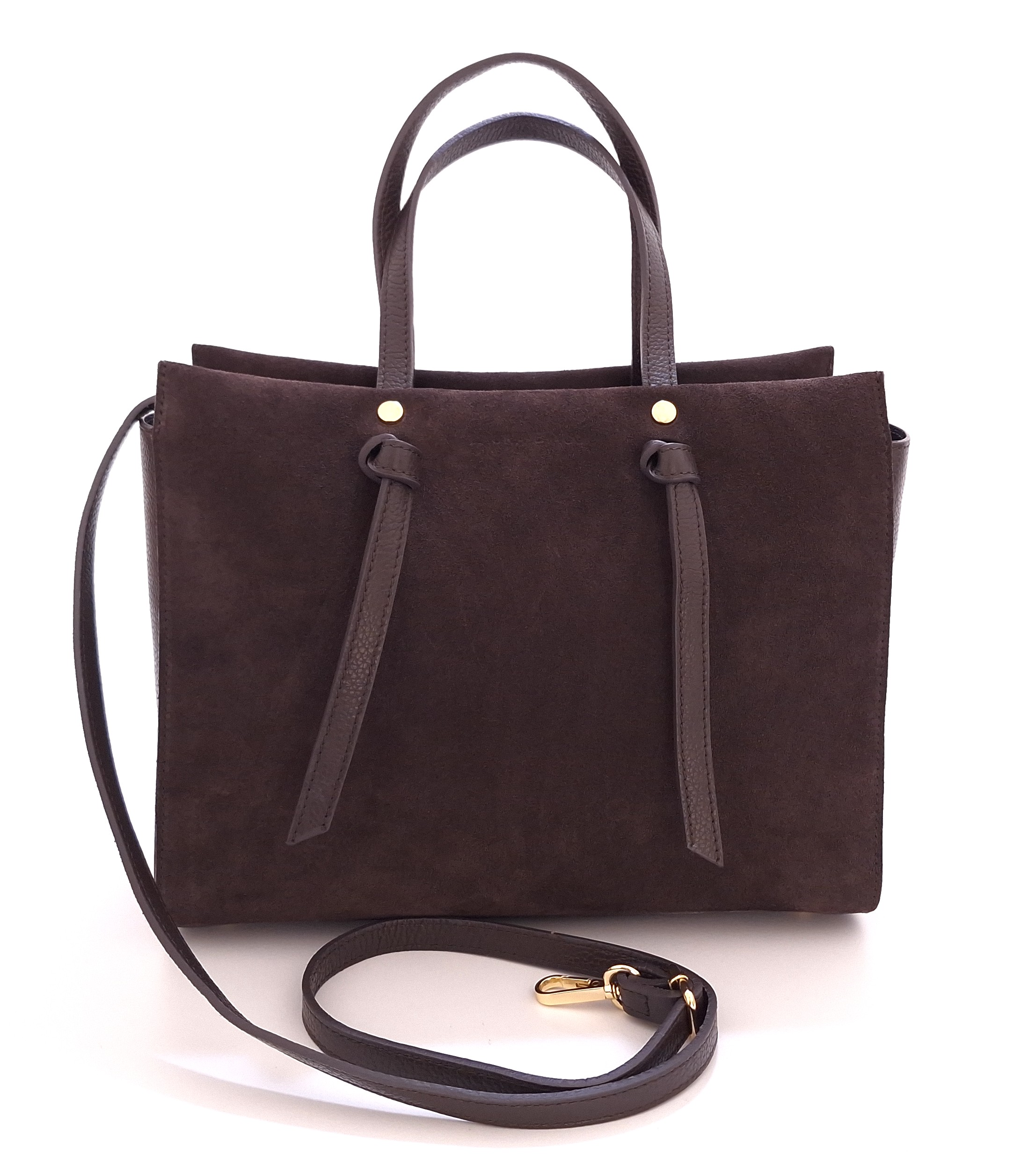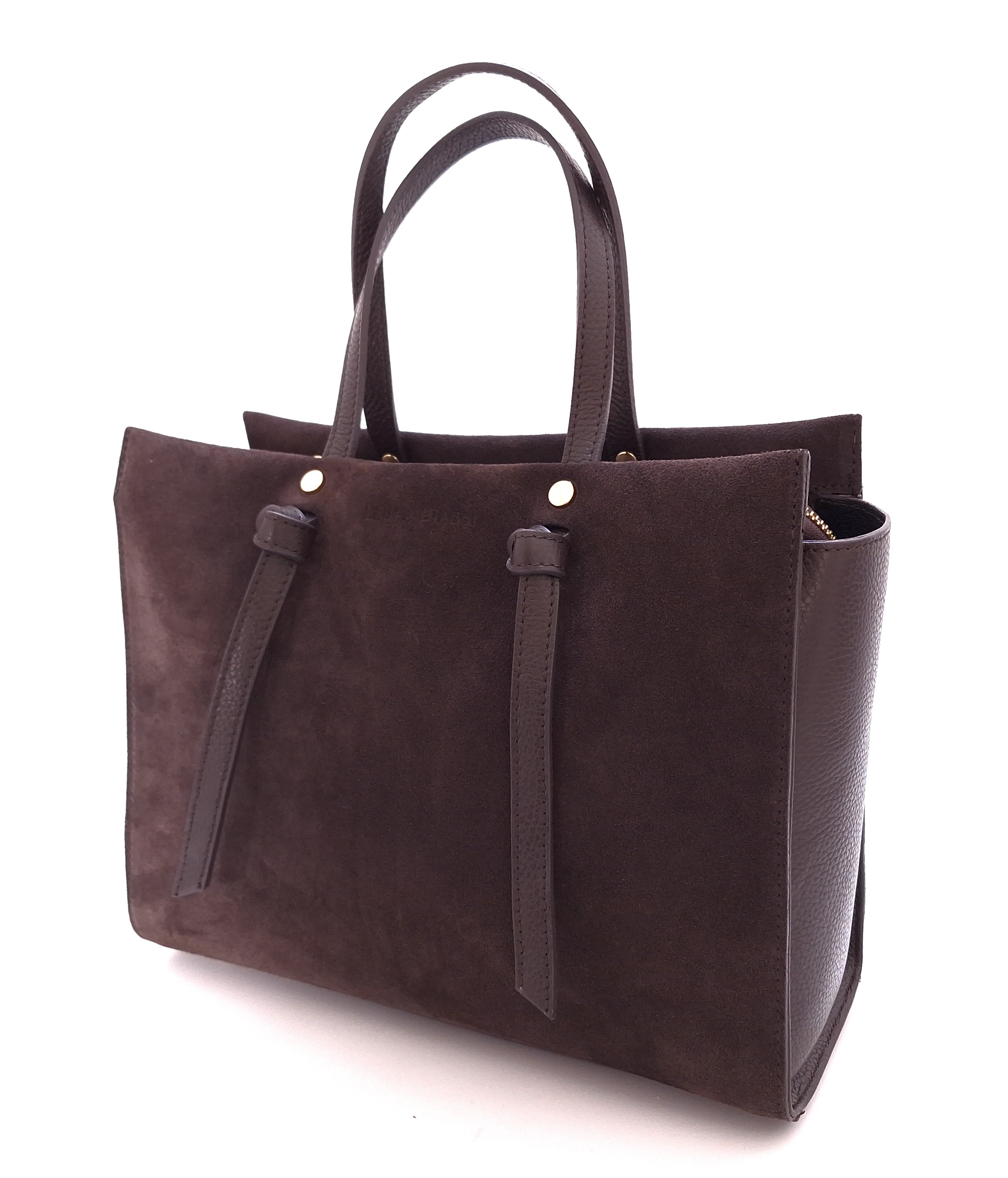 - Torebka uszyta ze skóry zamszowej i licowej.