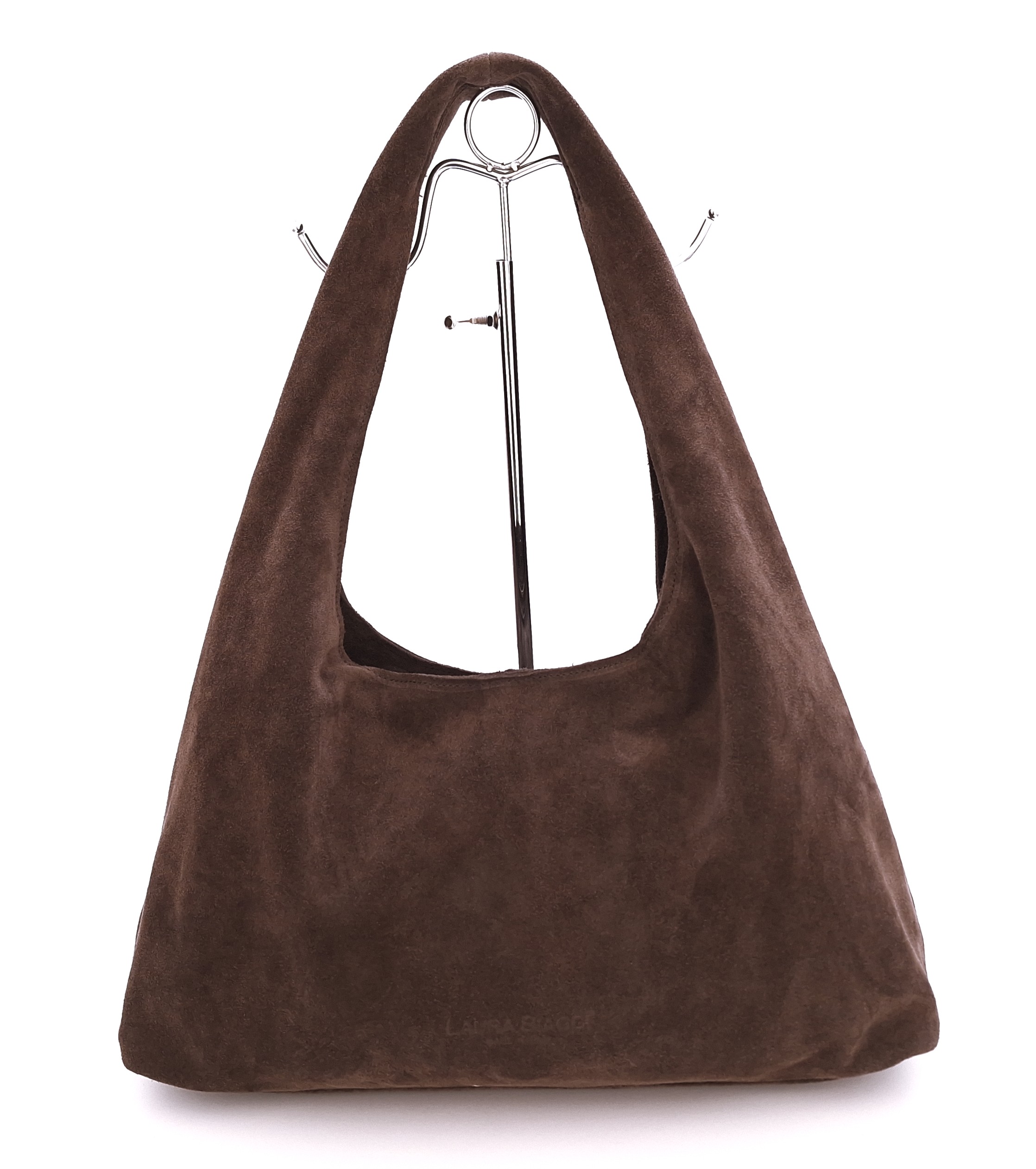 Duża torebka damska na ramię w kształcie hobo marki Laura Biaggi wykonana z wysokiej jakości naturalnej skóry zamszowej w brązowym kolorze. Jej luźny, lekko zaokrąglony fason doskonale wpisuje się w casualowy, miejski styl. Jest to model jednokomorowy z zapięciem na zamek błyskawiczny. Wnętrze skórzane umożliwia wygodne przechowywanie wszystkich niezbędnych akcesoriów. Posiada szeroki nieodpinany pasek do noszenia na ramieniu.