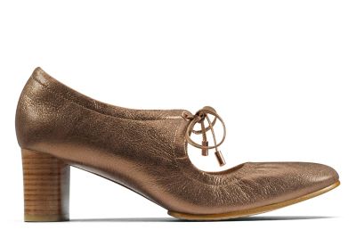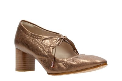 Eleganckie czółenka firmy CLARKS w kolorze bronze/metalic. W obuwiu zastosowano technologie Cushion plus.
