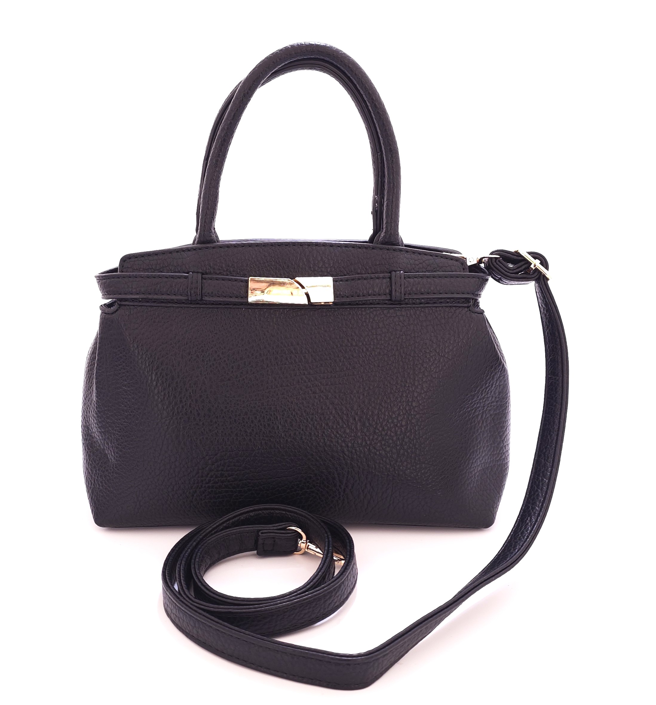 - Uniwersalna torebka damska jednokomorowa w kolorze czarnym wykonana z ekologicznej skóry.