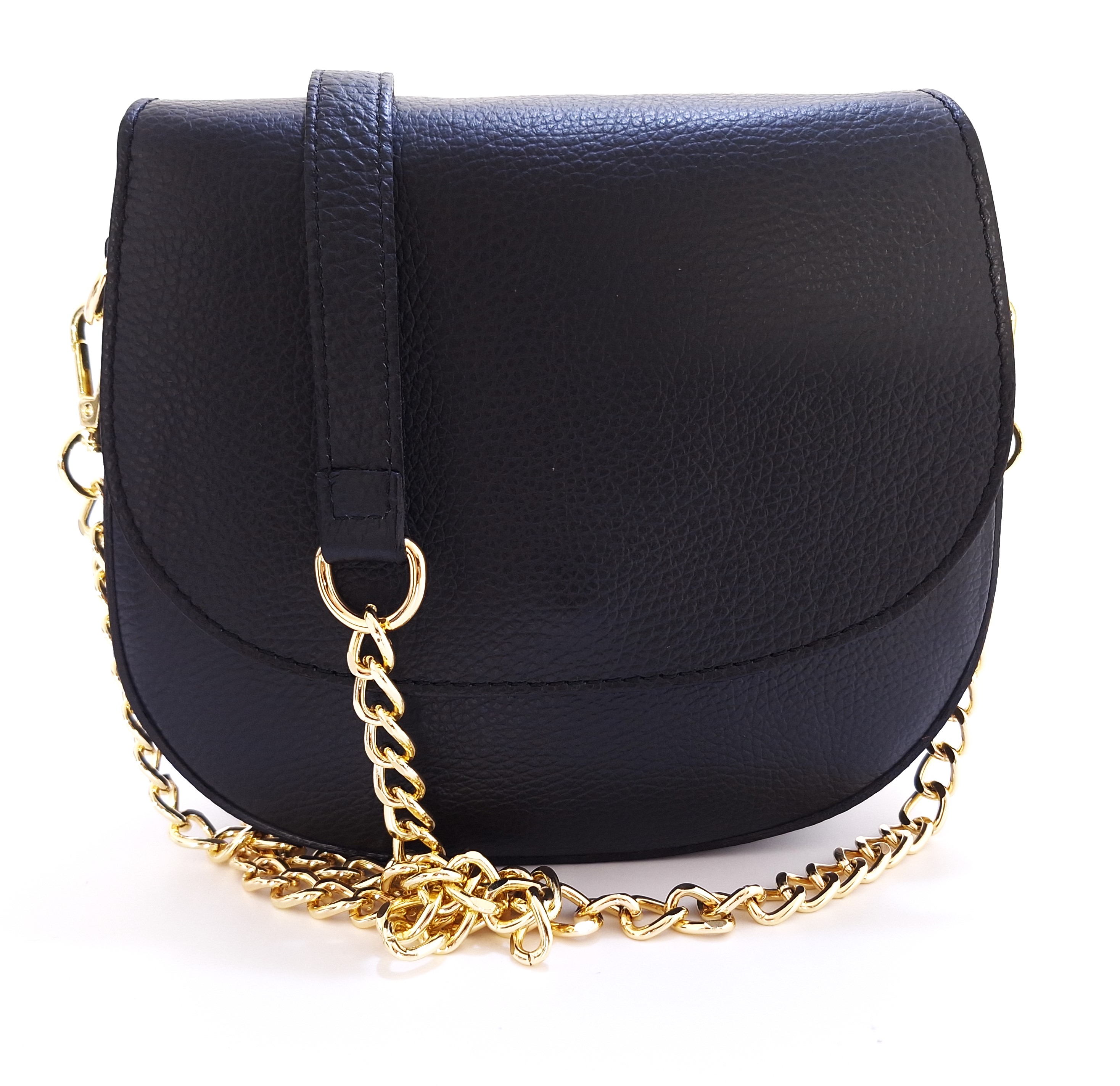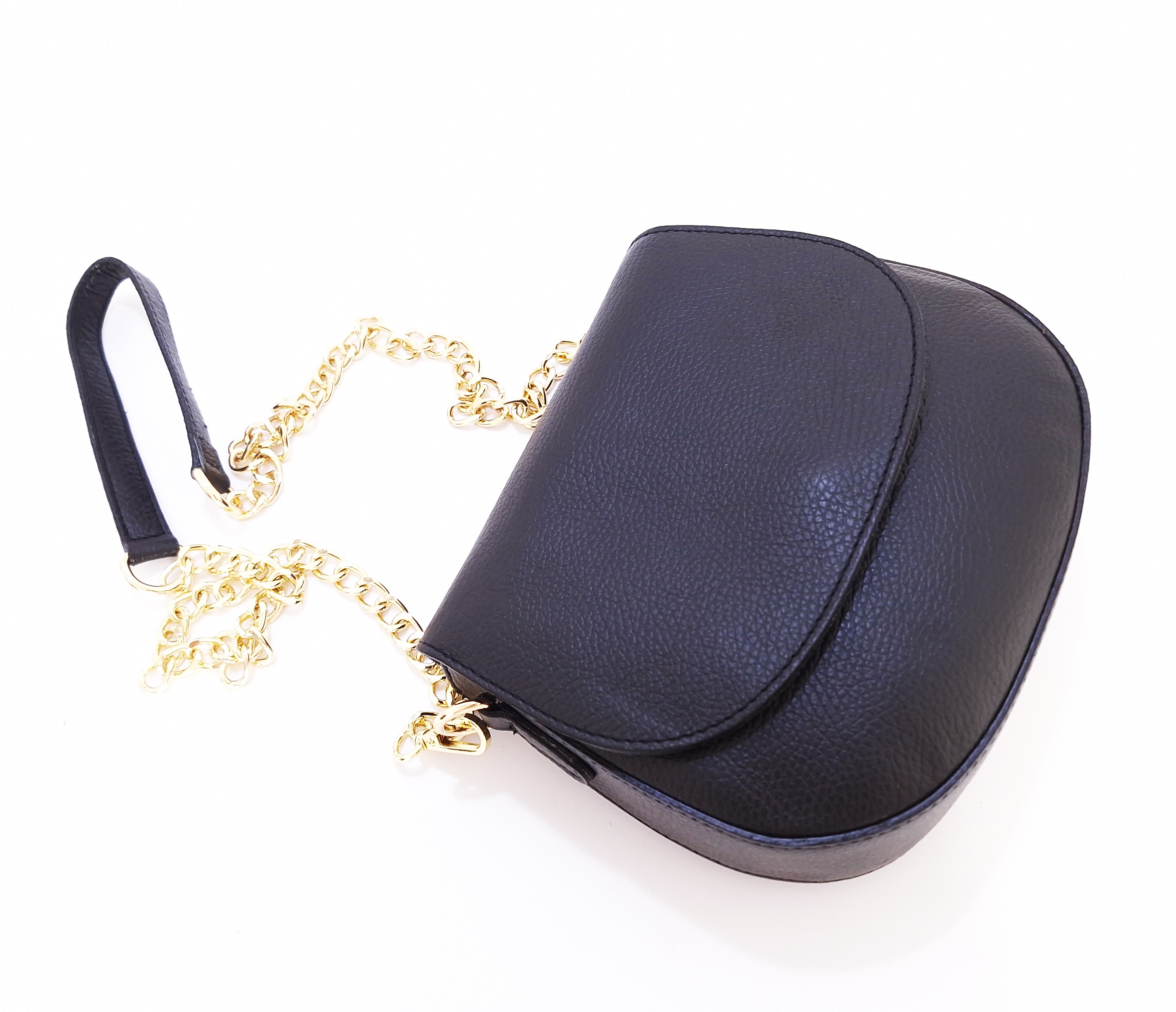 - Skórzana mała listonoszka w kolorze czarnym z łańcuszkiem.