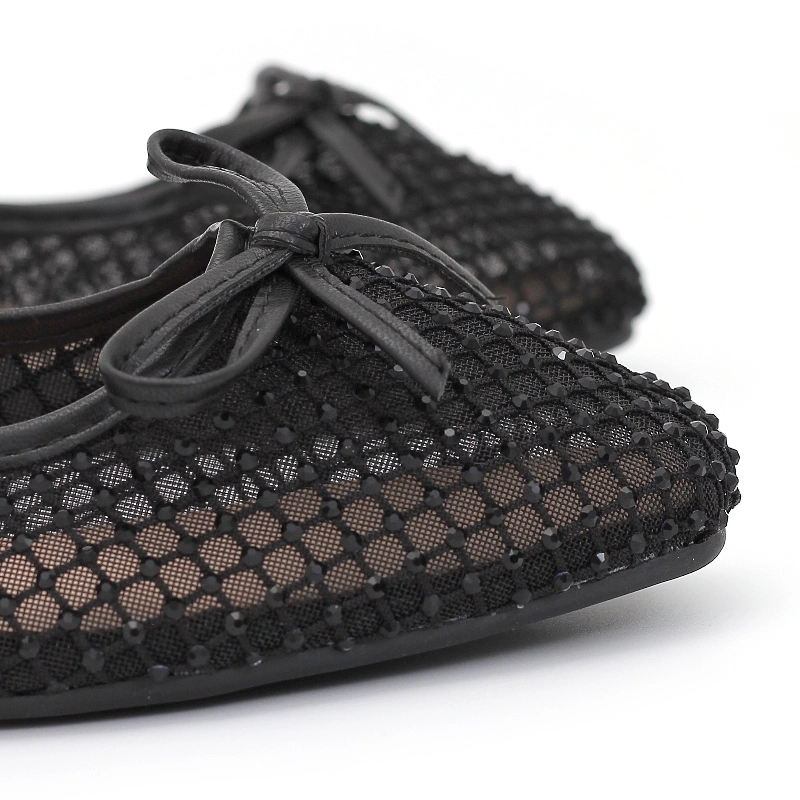 • Efektowne baleriny w kolorze czarnym z siateczki z mieniącymi się dżetami. Jest to model niezwykle wygodny. Idealnie pasują do casualowych, jak i do bardziej eleganckich stylizacji.