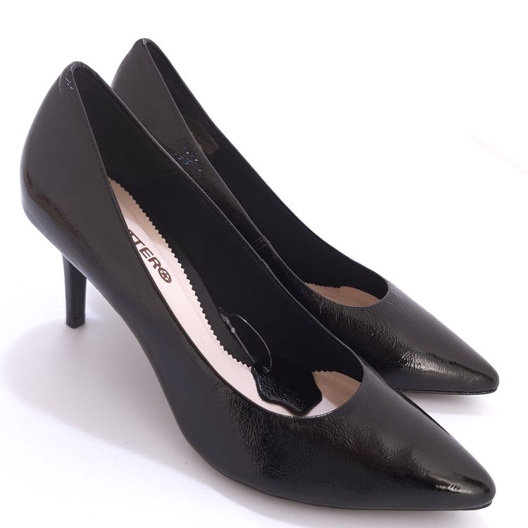 • czółenka wykonane z lakierowanej skóry w czarnym kolorze.