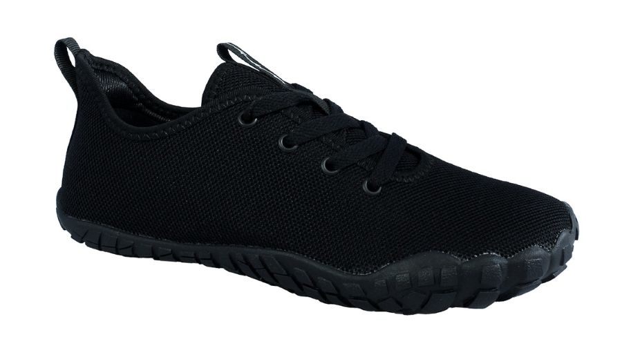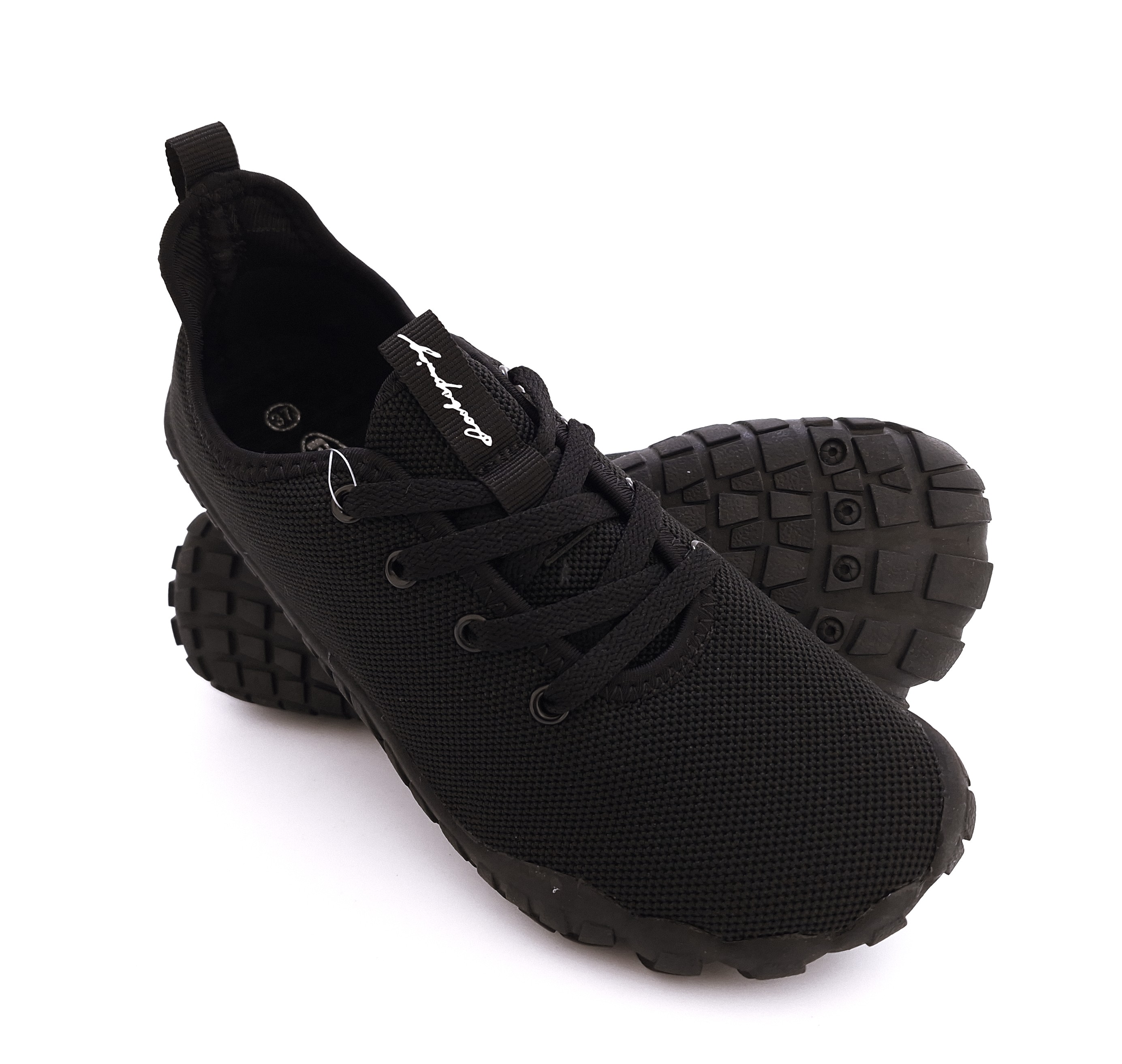 - Damskie półbuty typu Barefoot w kolorze czarnym, wykonane z tkaniny. Elastyczne, lekkie, wspierające naturalny ruch stopy. Idealne na co dzień, spacery i aktywne życie.