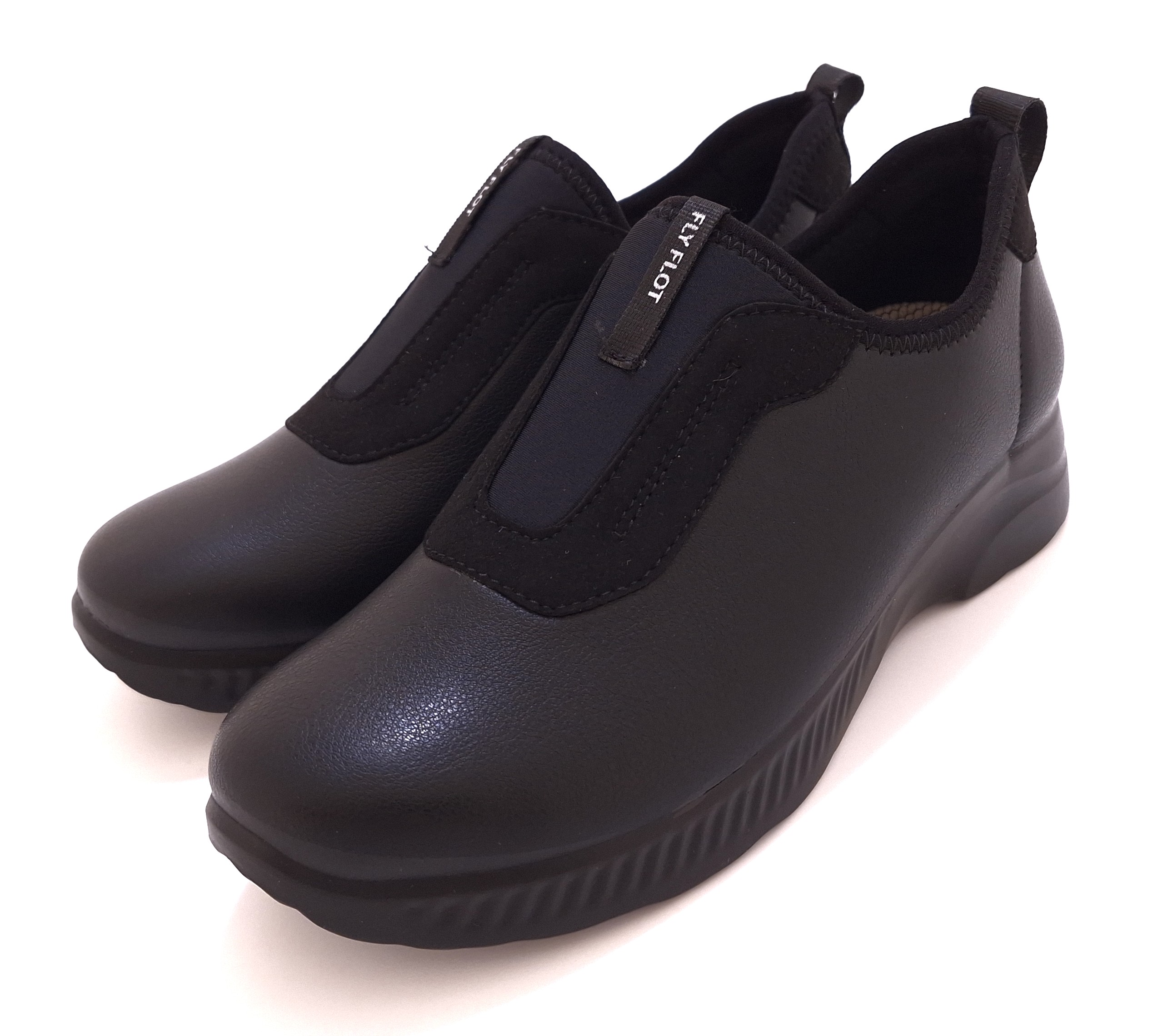 Wygodne półbuty damskie włoskiej marki Fly Flot to obuwie dla osób z wrażliwymi stopami, ceniących komfort i wygodę. Cholewka  wykonana z elastycznego materiału w klasycznej czerni doskonale dopasowuje się do kształtu stopy, nie powodując ucisku. Wnętrze półbutów zostało ocieplone miękką tkaniną, dzięki czemu buty świetnie sprawdzają się podczas chłodniejszych, jesiennych dni. Półbuty posiadają wyjmowaną wkładkę typu Memory Foam z systemem Anti- Schock, zapewniającą wygodę i komfort użytkowania. Elastyczna, antypoślizgowa podeszwa Piumatech Soft Flexible zapewnia doskonałą stabilność i bezpieczeństwo kroku na różnych nawierzchniach.
