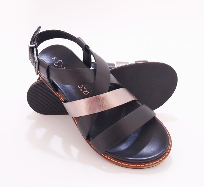 Postaw na ponadczasową elegancję i komfort w letnim wydaniu! Czarne sandały damskie marki Marco Tozzi wykonane z wysokiej jakości naturalnej skóry to idealny wybór dla kobiet ceniących styl i wygodę. Model przyciąga uwagę kontrastującym, metalicznym paskiem w kolorze srebra, który subtelnie podkreśla całość i dodaje nowoczesnego charakteru. Szerokie, krzyżujące się paski nie tylko zapewniają doskonałe dopasowanie do stopy, ale także stabilność podczas chodzenia. Regulowane zapięcie na klamerkę przy kostce pozwala na indywidualne dopasowanie. Płaska podeszwa sprawia, że sandały są idealnym wyborem na codzienne letnie wyjścia.