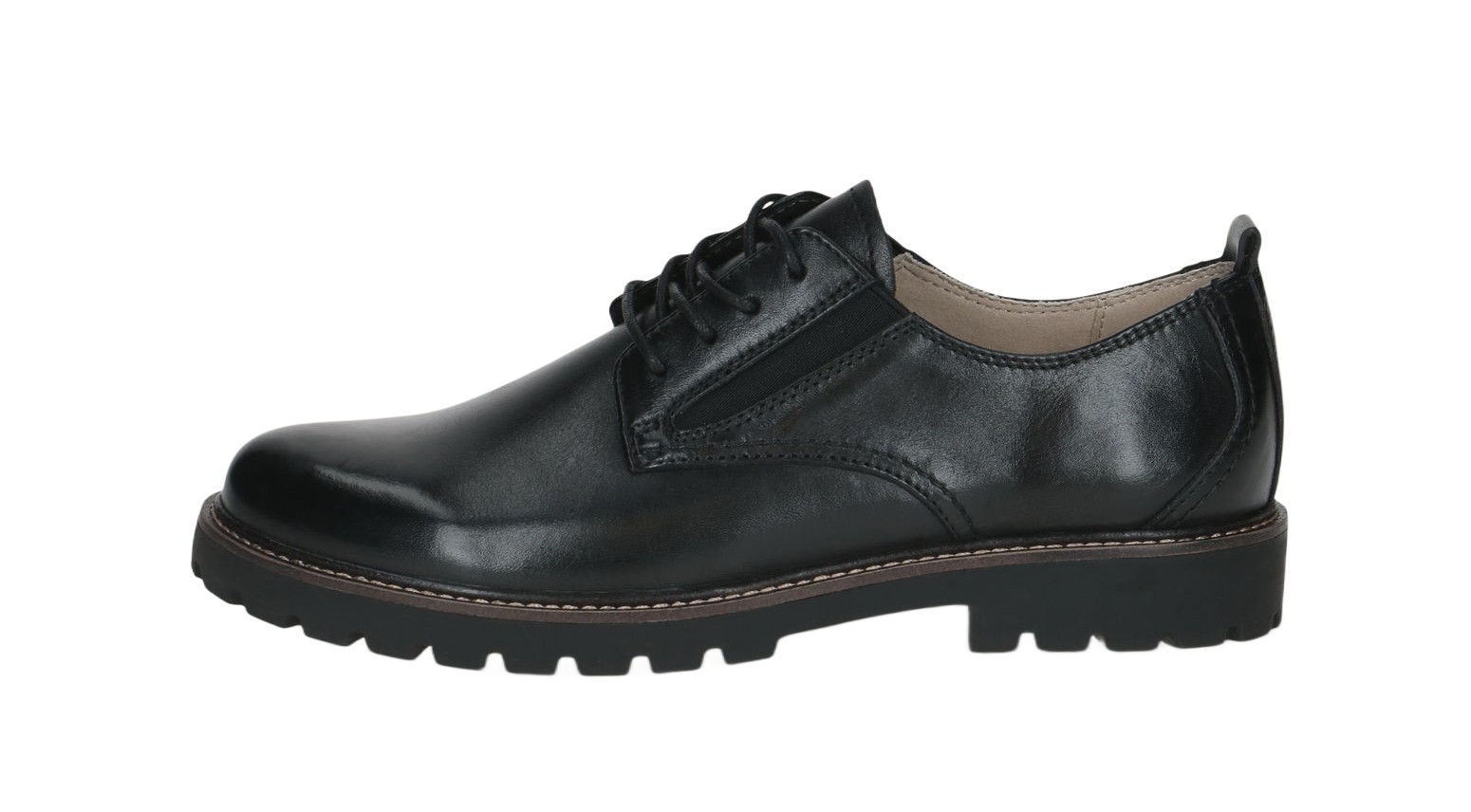 Sznurowane półbuty damskie marki Caprice to propozycja dla kobiet, które cenią sobie styl i komfort. Wykonane zostały z wysokiej jakości skóry naturalnej w ponadczasowym czarnym kolorze, prezentują się elegancko i minimalistycznie. Model osoadzono na solidnej podeszwie z wyrazistym bieżnikiem, który nie tylko podkreśla modny charakter butów, ale także zapewnia doskonałą przyczepność i komfort chodzenia przez cały dzień. Klasyczne sznurowanie pozwala idealnie dopasować obuwie do stopy, a wszyte po bokach elastyczne wstawki zwiększają swobodę ruchów i ułatwiają zakładanie. Dzięki uniwersalnemu designowi te półbuty doskonale odnajdą się zarówno w eleganckich stylizacjach biurowych, jak i w luźniejszych, codziennych zestawach.
