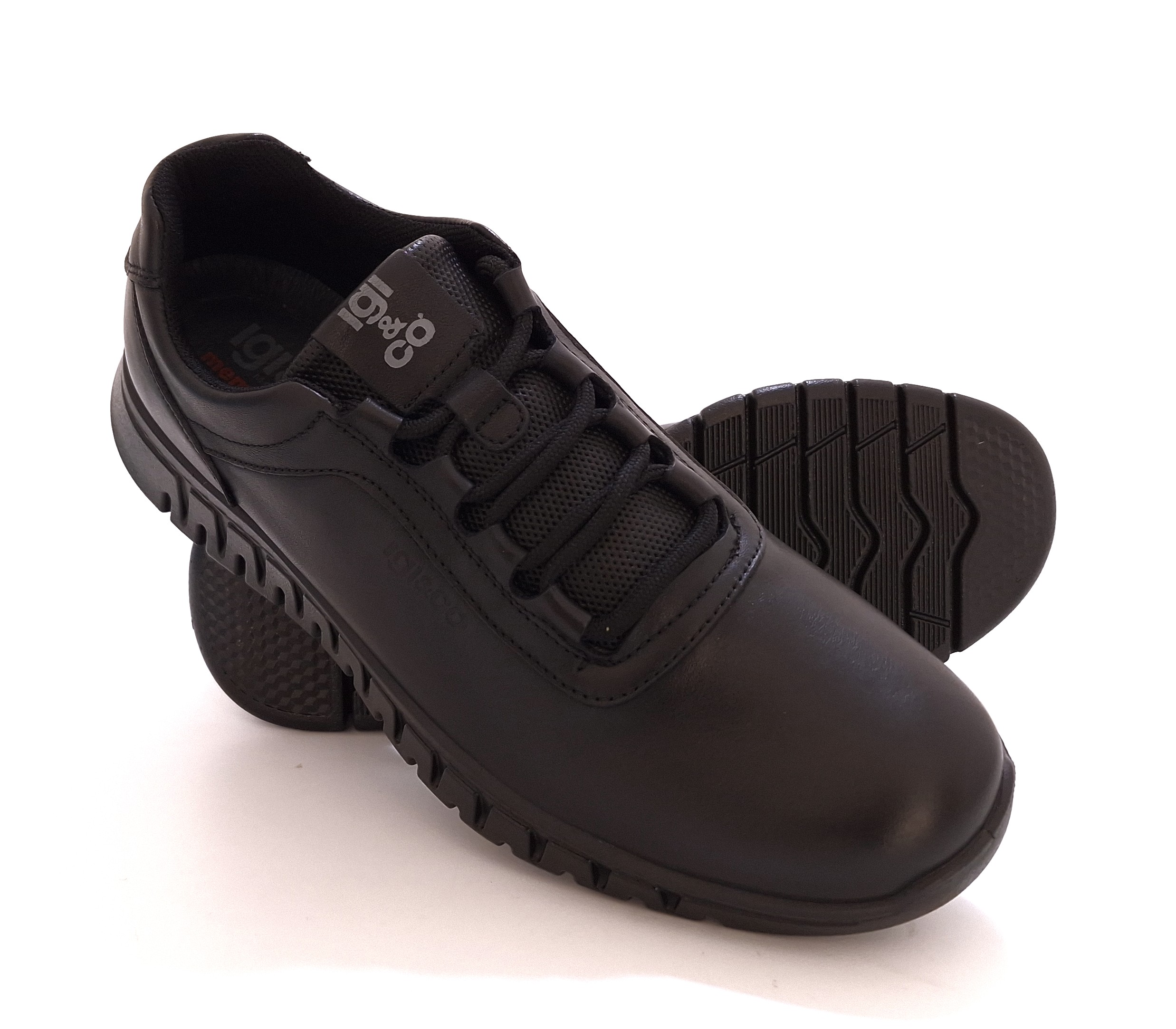 Klasyczne męskie sneakersy włoskiej marki Igi&Co to obuwie zaprojektowane z myślą o mężczyznach, którzy cenią sobie styl, wygodę i trwałość. Wykonanane z naturalnej skóry licowej zachwycają minimalistycznym designem, który doskonale wpisuje się w nowoczesny, casualowy look. Utrzymane w uniwersalnej czarnej kolorystyce, dzięki czemu bez trudu dopasujesz je do większości stylizacji. Klasyczne sznurowanie pozwala na idealne dopasowanie do stopy, gwarantując stabilność i wygodę przez cały dzień. Miękka wkładka z pianki Memory Foam dopasowuje się do kształtu stopy, zapewniając niezrównany komfort chodzenia. Podeszwa z lekkiego i elastycznego materiału gwarantuje stabilność oraz antypoślizgowość.
