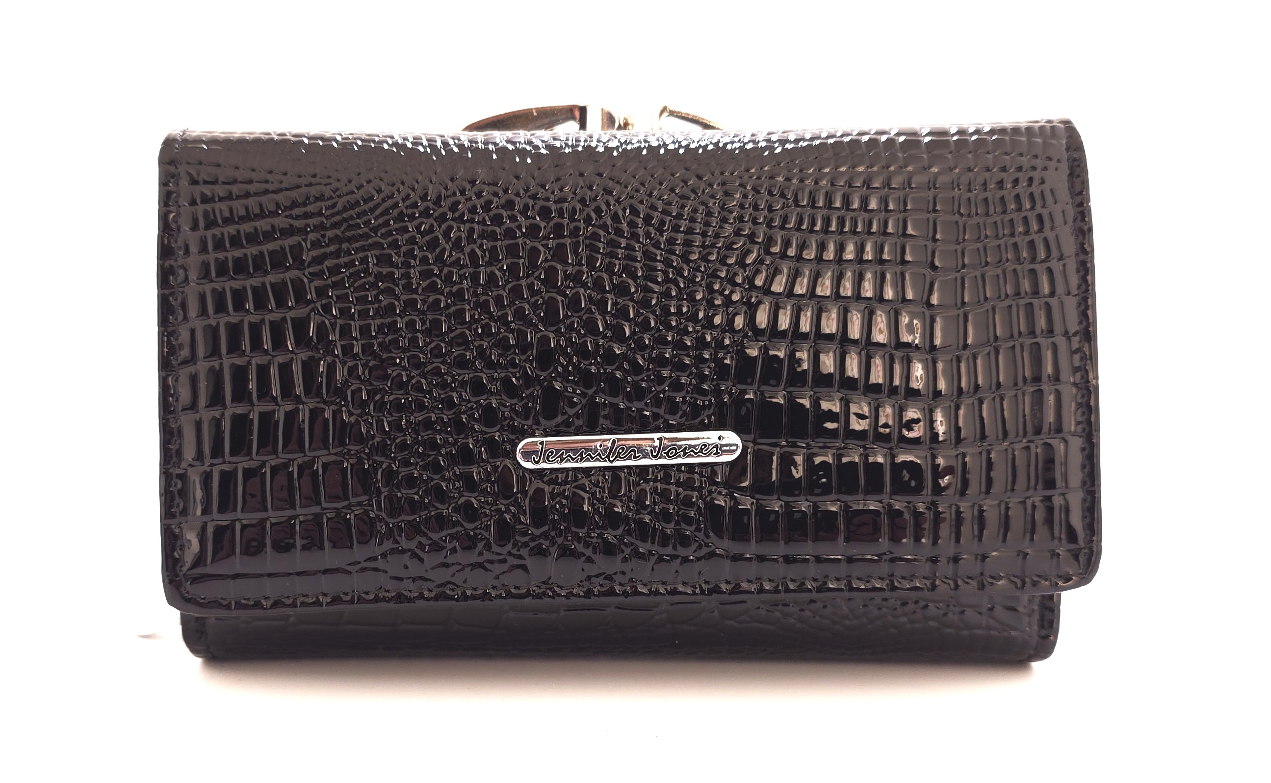 Czarny lakierowany portfel damski Jennifer Jones 5249