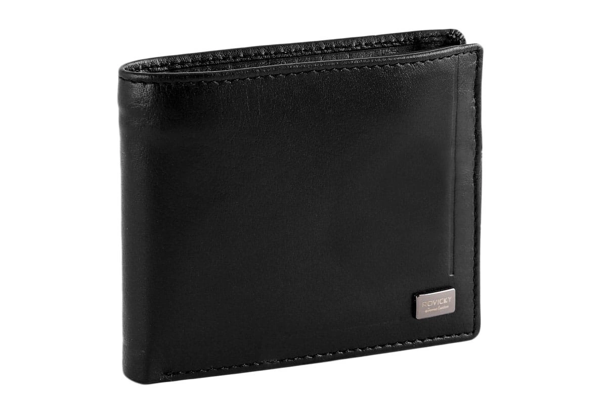 Średniej wielkości czarny portfel męski marki Rovicky odszyty z wysokiej jakości licowej skóry o lekko błyszczącej fakturze. Model o orientacji poziomej bez zapięcia zewnętrznego. Wnętrze przemyślane z licznymi przegródkami na karty kredytowe, kieszenią na banknoty oraz dodatkowymi kieszonkami. Portfel został wyposażony w technologię RFID Stop, która chroni Twoje karty, dokumenty biometryczne, legitymacje, karty zbliżeniowe przed nieautoryzowanym odczytem.