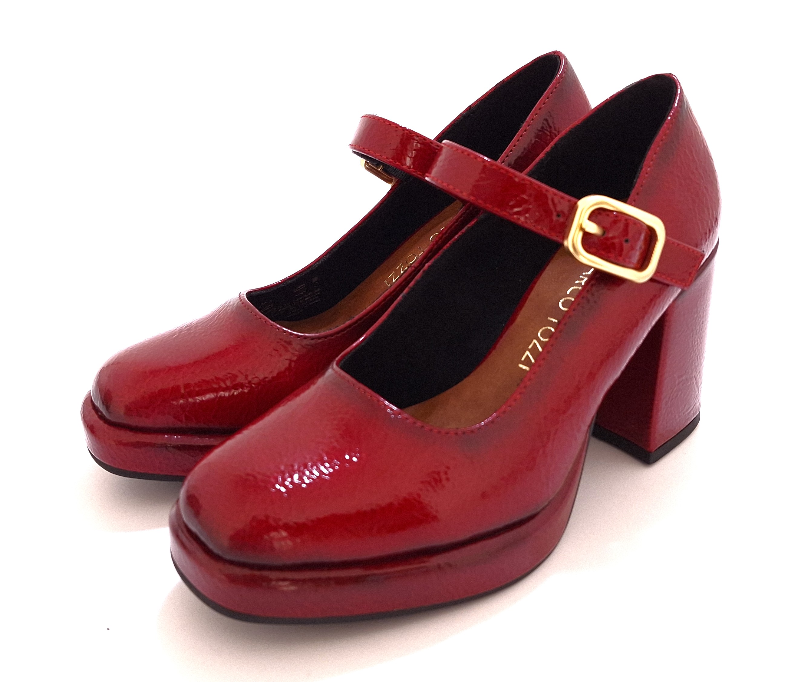 Czerwone czółenka Mary Jane na stabilnym obcasie Marco Tozzi 2-24405 r36
