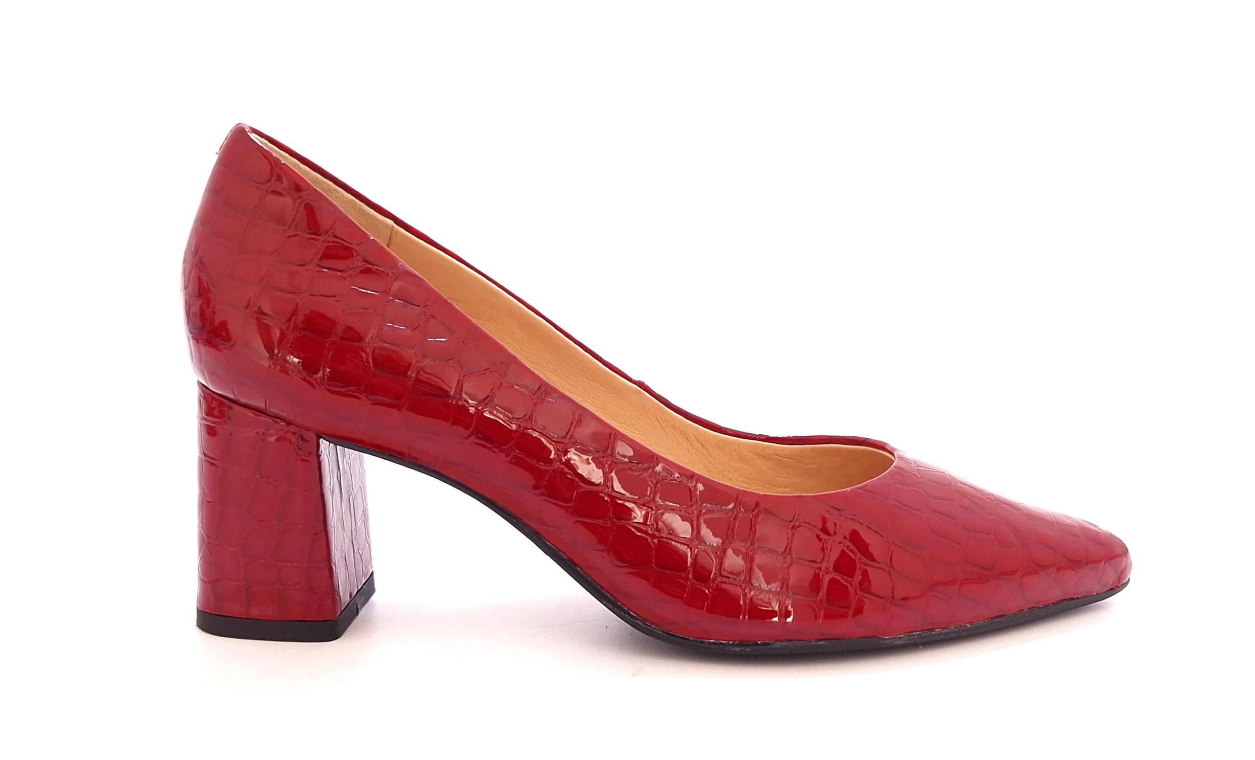 - Czerwone czółenka z naturalnej skóry. Stabilny obcas w formie słupka gwarantuje wygodę przez cały dzień. Doskonale komponują się z różnorodnymi stylizacjami.