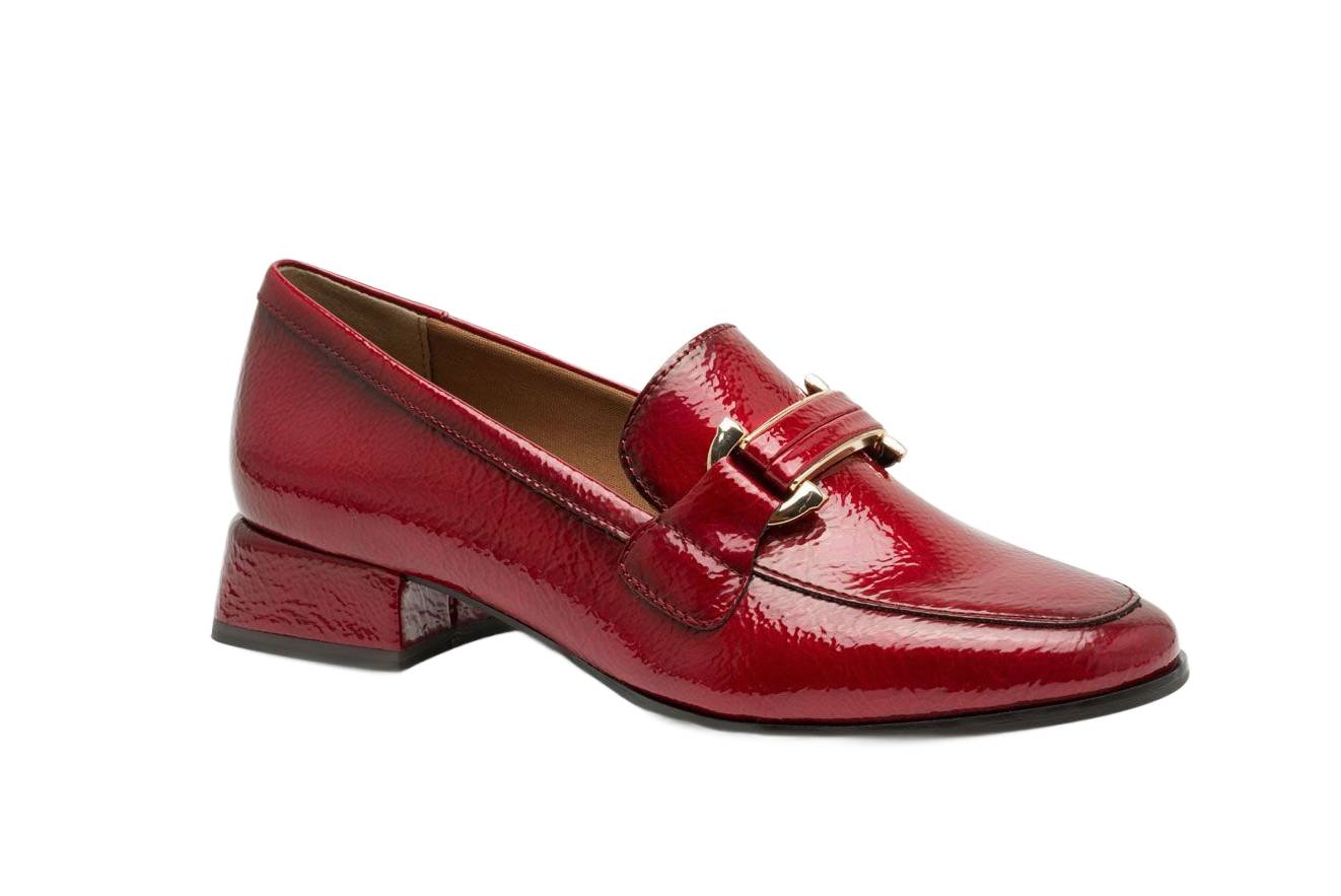 - czerwone mokasyny wykonano z ekologicznej skóry lakierowanej.