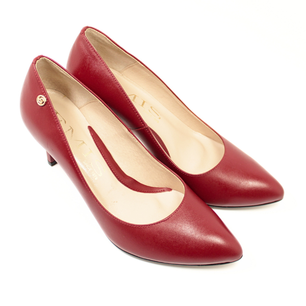 Czerwone skórzane czółenka szpilki Emis S6341/442 r37,5