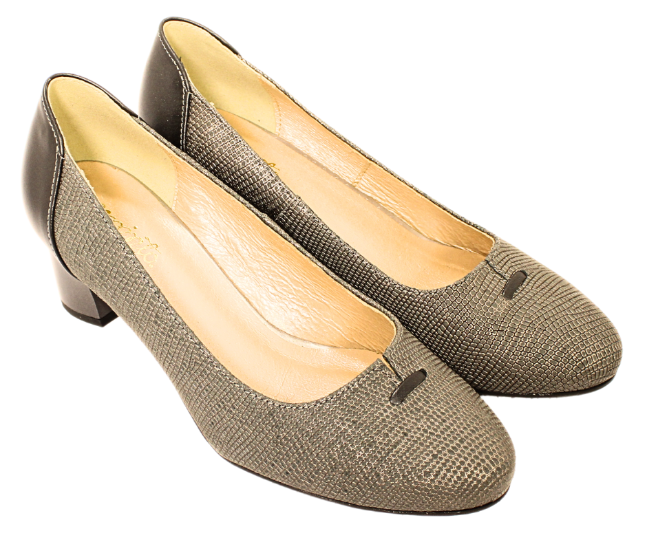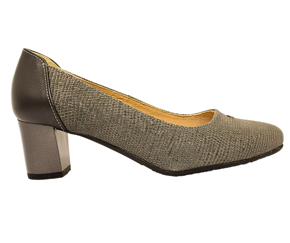 - Czółenka damskie w kolorze szarym wykonane z naturalnej, miękkiej, zamszowej skóry na niewielkim obcasie. Idealnie sprawdzą się do uzupełnienia każdej kreacji, nadając jej wyjątkowego charakteru