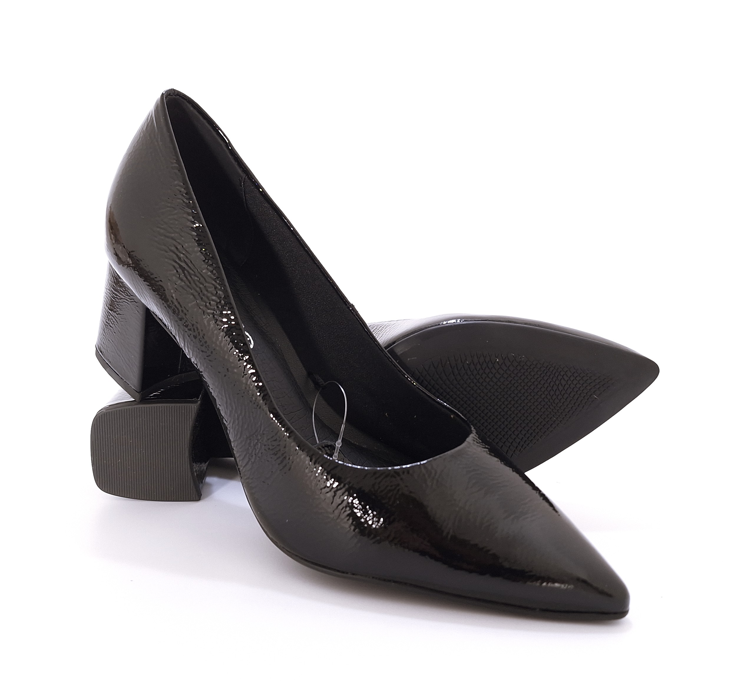 - czółenka wykonane z lakierowanej skóry w czarnym kolorze.