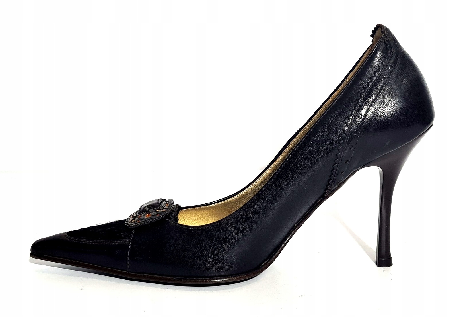 Bardzo efektowne czółenka z klamra która pięknie je podkreśla a do tego część czubka wykonany z końskiego włosa.
