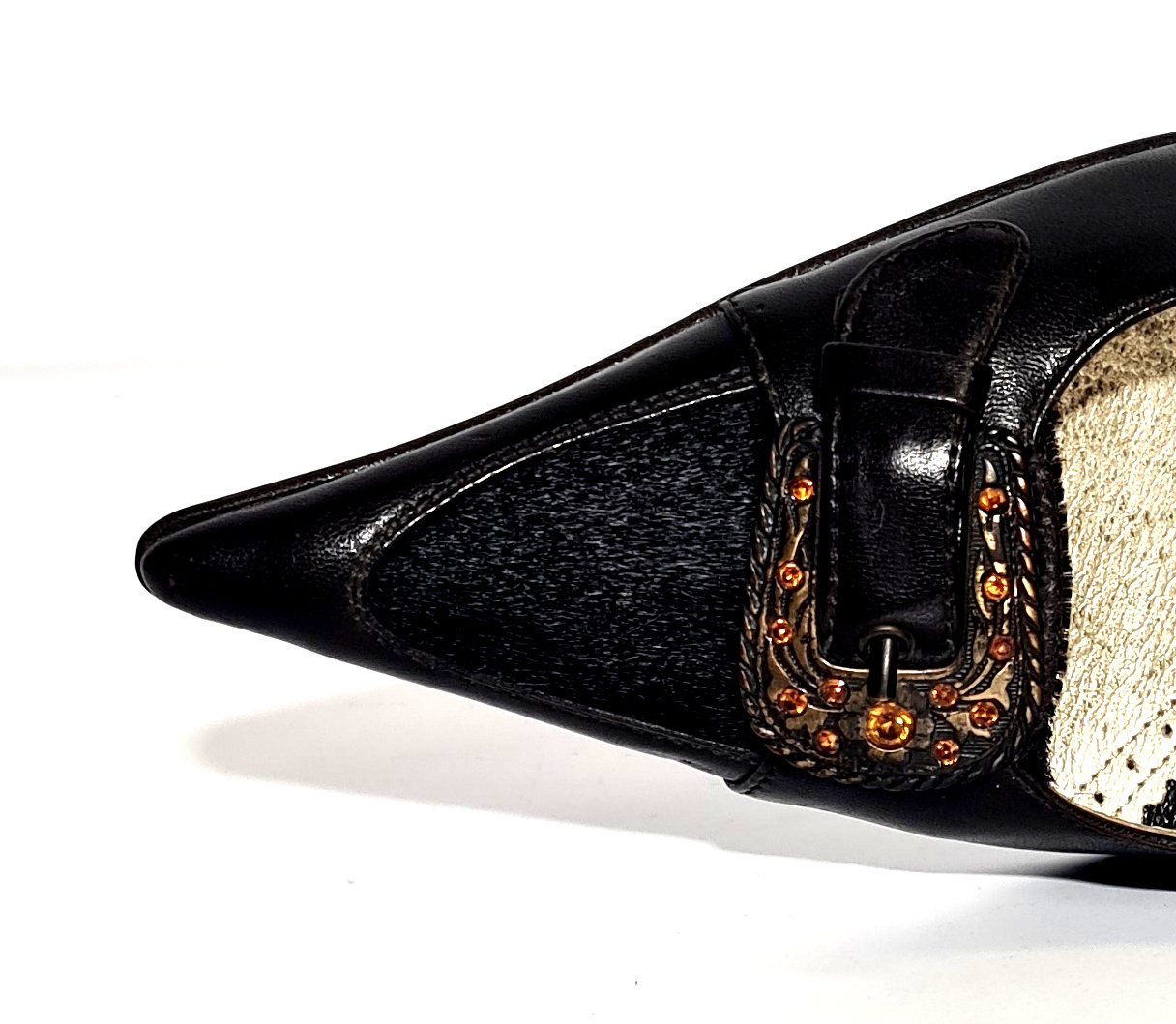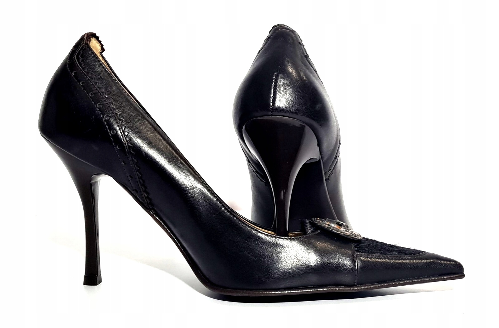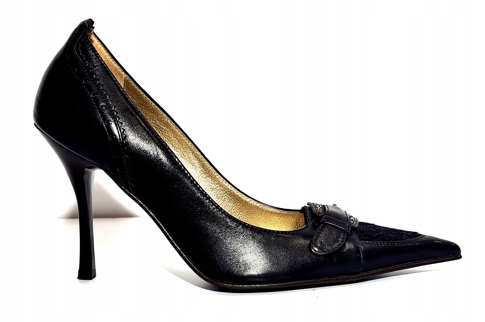 Bardzo efektowne czółenka z klamra która pięknie je podkreśla a do tego część czubka wykonany z końskiego włosa.