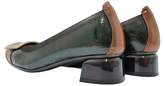Wykonane z wysokiej jakości skóry naturalnej, zapewniają trwałość i długotrwałą satysfakcję z ich użytkowania. Poprzez zastosowanie specjalnej, cienkiej gumki, która została starannie obszyta wokół buta, uzyskujemy perfekcyjne dopasowanie do kształtu naszej stopy. W rezultacie, noszenie czółenek staje się niezwykle komfortowe. Miękka wkładka zapewnia doskonałe wsparcie i amortyzację dla Twoich stóp. Dodatkowym elementem, który dodaje wyjątkowego uroku, jest designerskie wykończenie buta. Wyróżnia się ono interesującym kwadratowym noskiem oraz ekskluzywną złotą klamrą, na której znajduje się logo firmy. To dopełnienie sprawia, że buty prezentują się jeszcze bardziej stylowo i wyjątkowo.