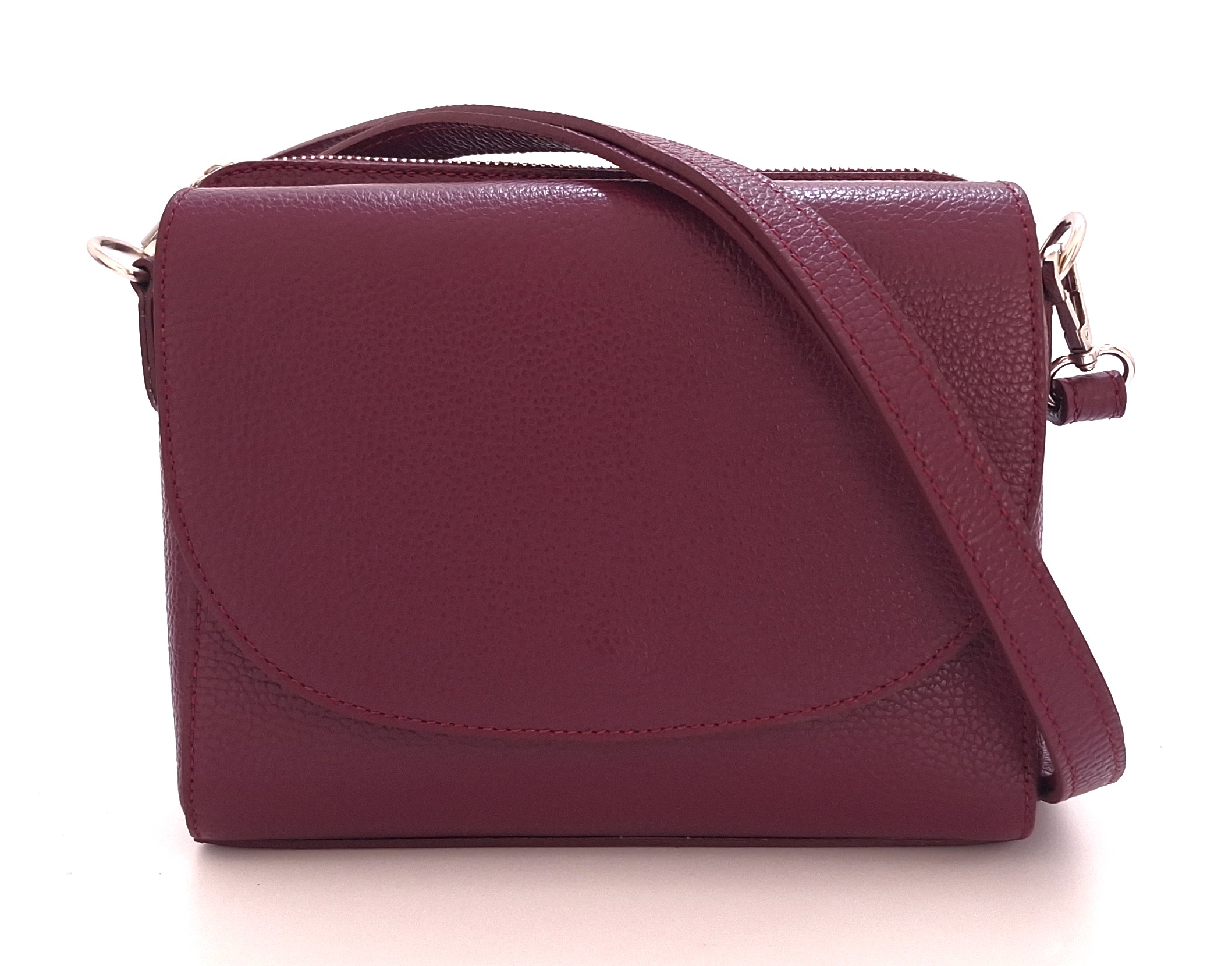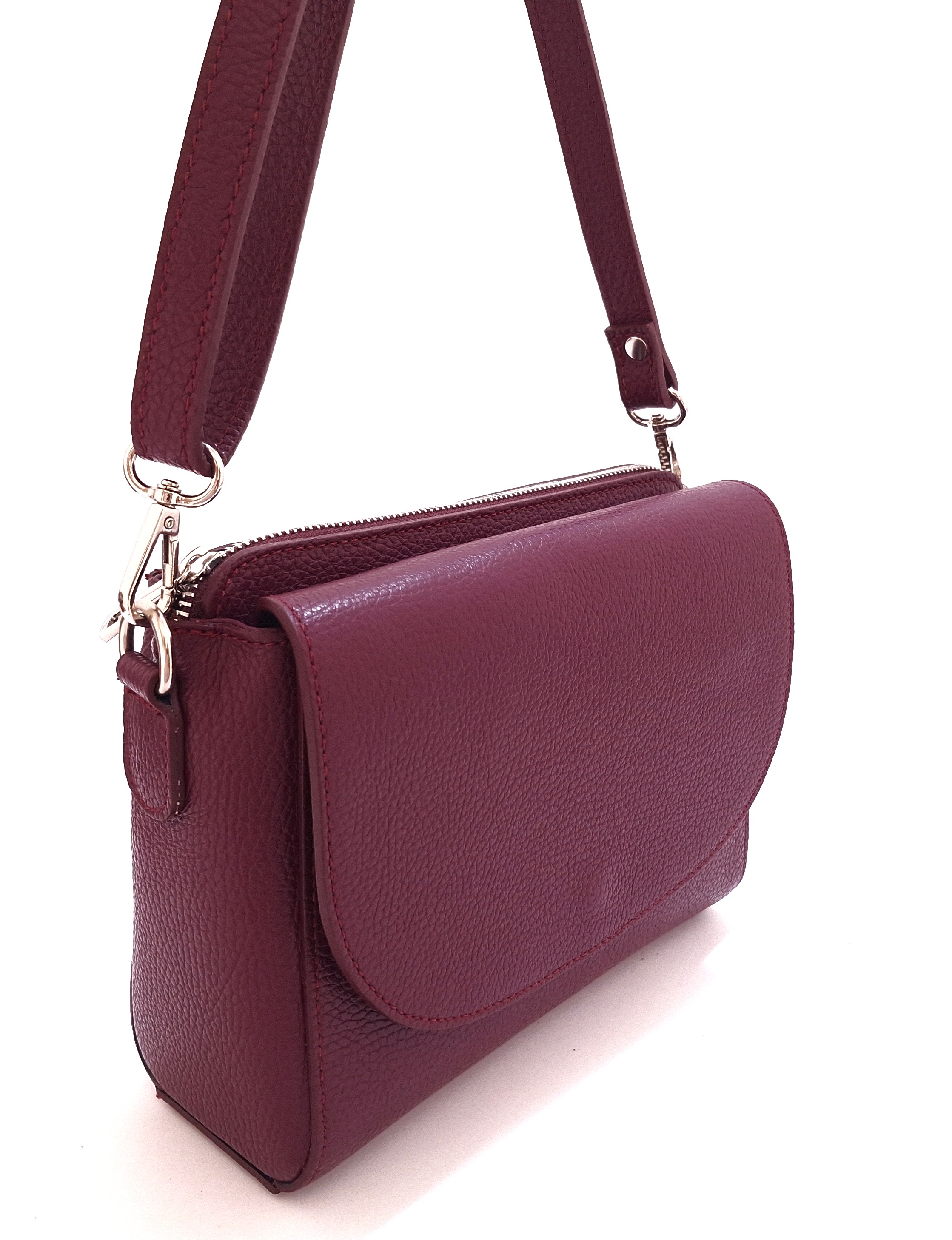 Damska listonoszka z klapką włoskiej marki Borse in Pelle. Wykonana z wysokiej jakości skóry naturalnej w bordowym kolorze. Dwie oddzielne komory pomieszczą wszystkie niezbędne drobiazgi. Wnętrze wykończone podszewką. Usztywniane dno sprawia, że listonoszka zachowuje swój kształt nawet przy niewielkim obciążeniu. Magnes na klapie gwarantuje szybki dostęp do kieszonki. Regulowany pasek pozwala na komfortowe dopasowanie - nos ją zarówno na ramieniu, jak i przez ramię, dopasowując długość do własnych potrzeb.