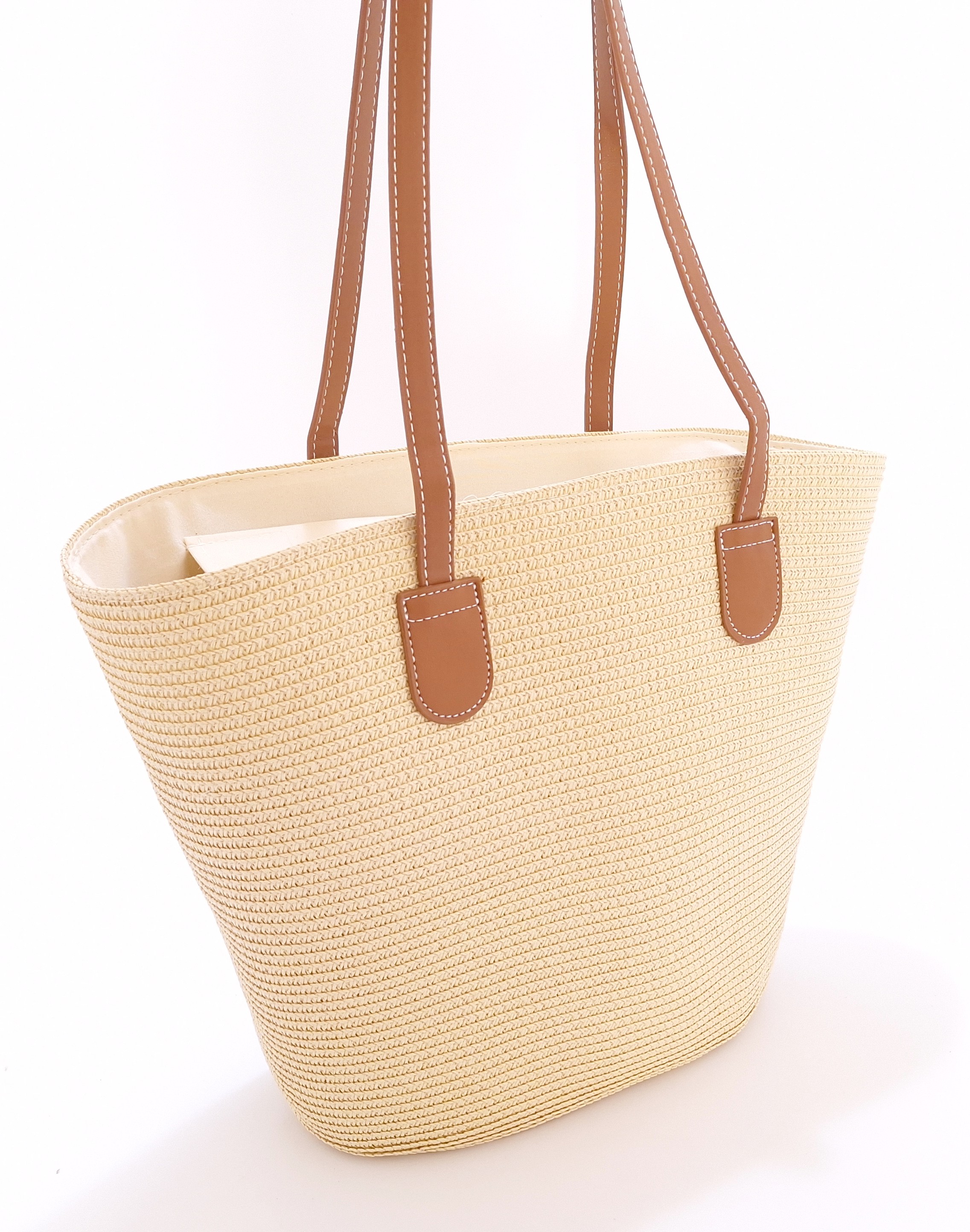 Damska torebka typu koszyk to niezastąpiony dodatek na letni dni. Torebka wykonana z papierowej słomki w jasnobeżowym kolorze. Torebka ma jedną pojemną komorę zamykaną na praktyczny zamek błyskawiczny Wnętrze wykończone podszewką z poliestra. Dwie cienkie rączki pozwalają nosić ją na ramieniu lub w ręku.