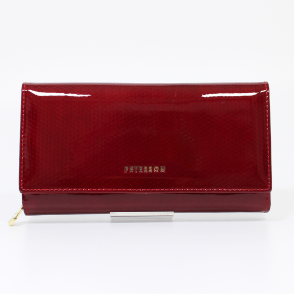 Duży lakierowany portfel damski ze skóry Peterson PTN 42100 -SBR czerwony