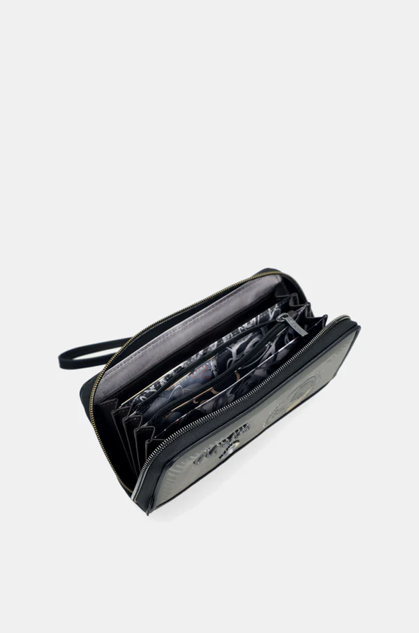 Portfel wykonany z ekologicznej skóry. Wnętrze wyściełane kolorową podszewką z motywem kolekcji. Całość zamykana na zamek błyskawiczny.