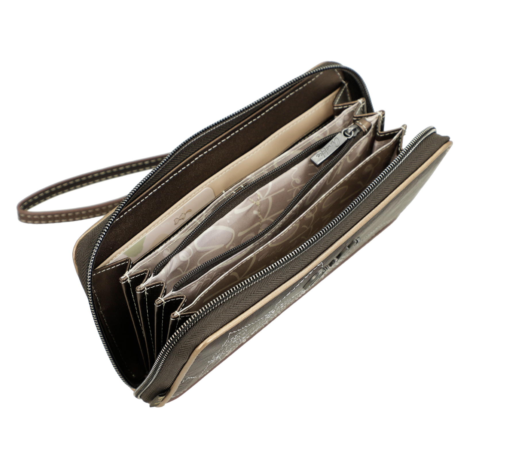 Portfel damski dużej wielkości z kolekcji Anekke Muse Bloom SS26 oferuje wystarczającą przestrzeń na banknoty, monety i wiele kieszonek na karty, są nawet miejsca na fotografie bliskich. Portfel zapakowany w pudełko upominkowe z dedykacją.