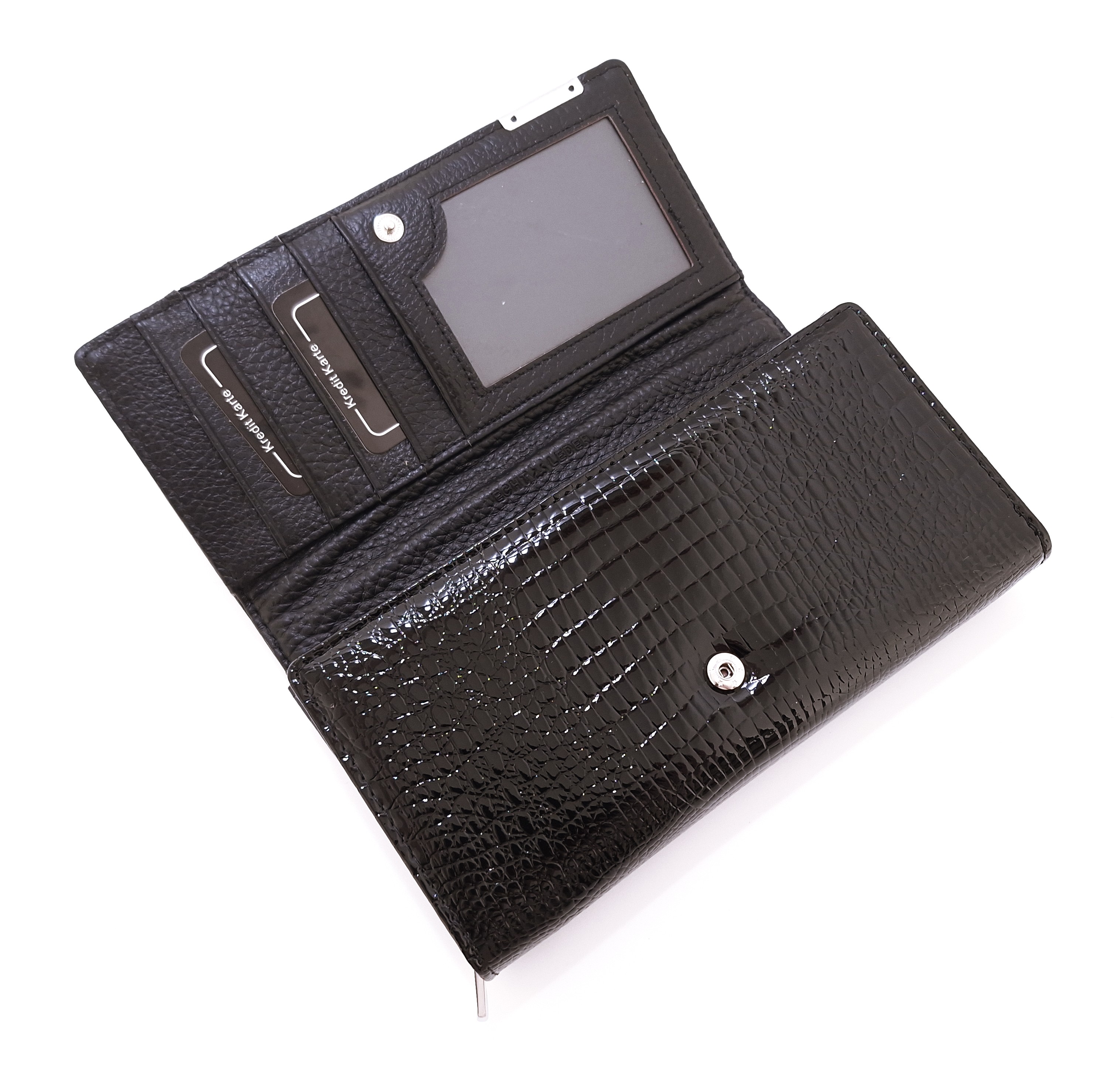 - portfel wykonany z naturalnej skóry lakierowanej.