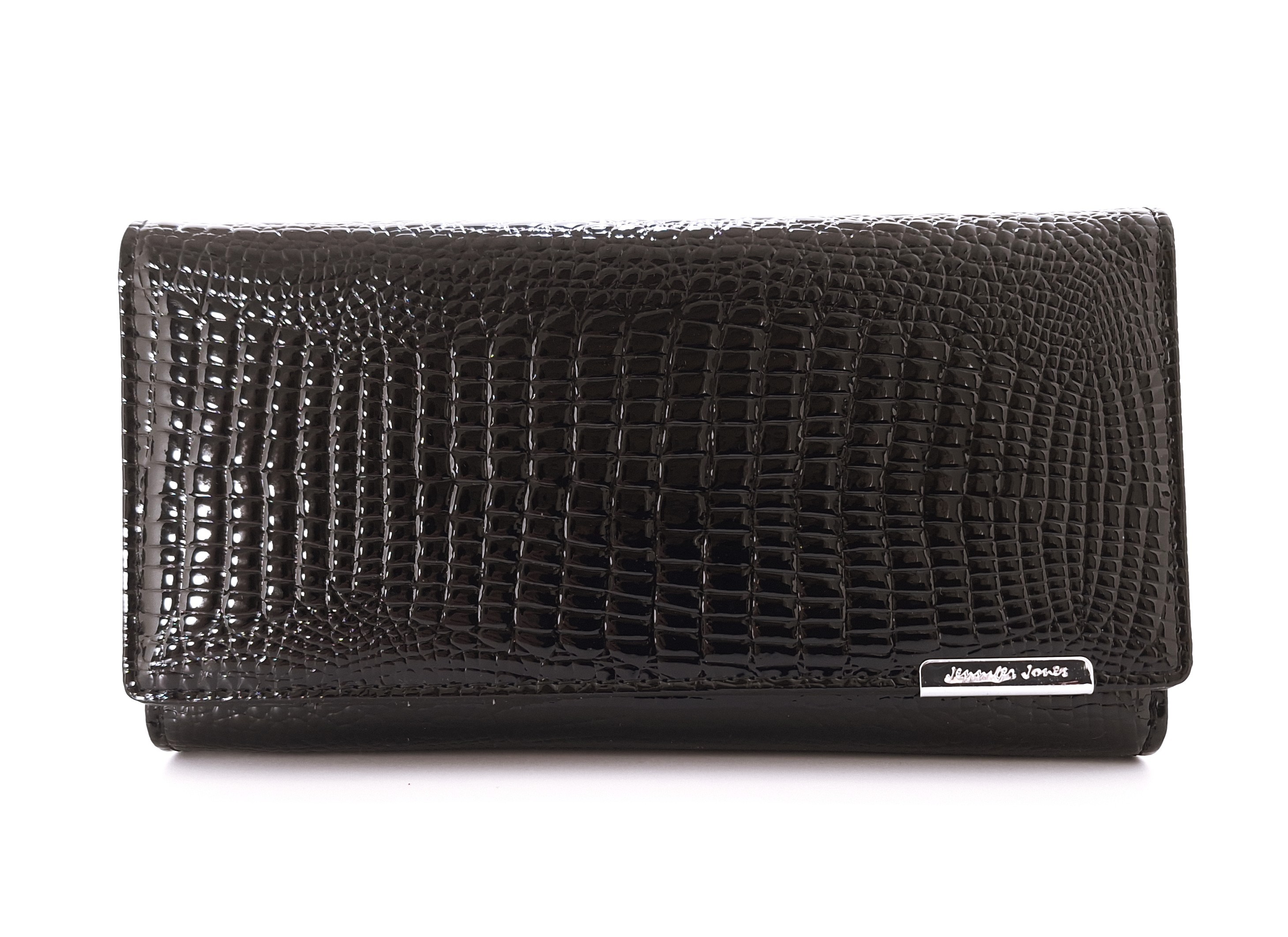 Duży skórzany portfel damski lakierowany czarny Jennifer Jones 5199-2