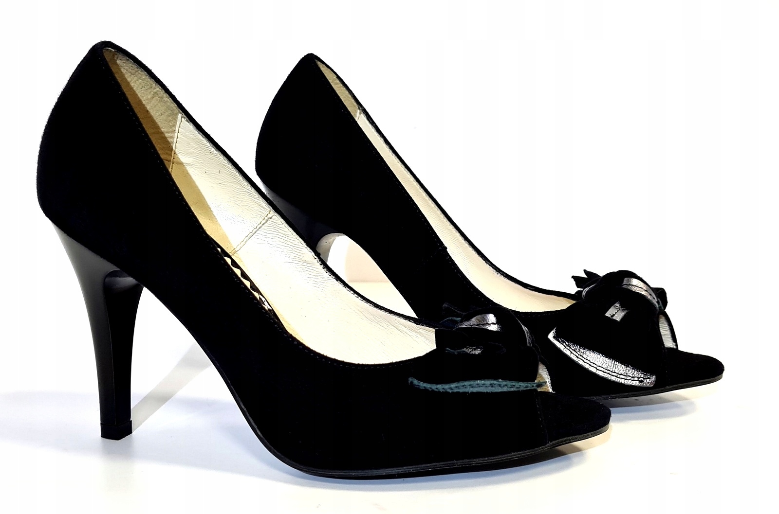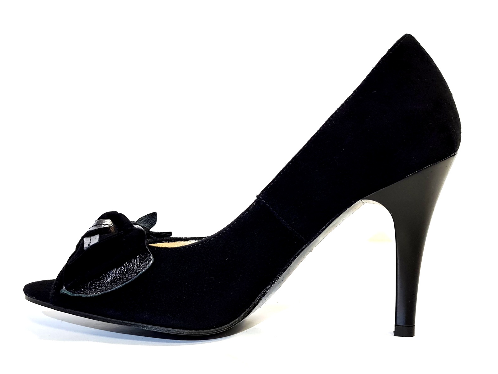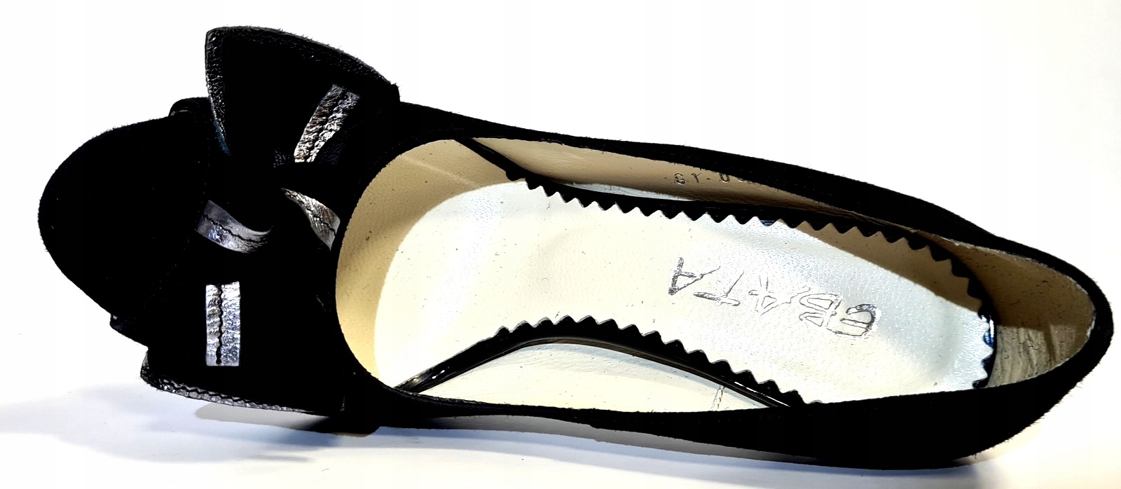 EBATA 875 czółenka CZARNY ZAMSZ kokarda r36