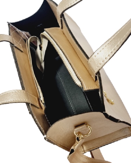 Główna komora torebki zamykana na zamek, zapewnia wystarczająco dużo przestrzeni na przechowywanie niezbędnych przedmiotów, takich jak portfel, telefon, kosmetyki i wiele więcej. Z tyłu także umiejscowiona jest kieszeń na suwak. W przedniej części pod elegancką klapą, znajduje się praktyczna otwarta kieszonka. Torebka posiada wygodne rączki umożliwiające łatwe noszenie jej w dłoni, co jest szczególnie praktyczne podczas krótkich dystansów lub gdy chcesz mieć torebkę pod ręką. Dodatkowo wyposażona jest w długi, regulowany pasek, który umożliwia przewieszenie jej przez ramię, zapewniając wygodę noszenia w różnych sytuacjach.