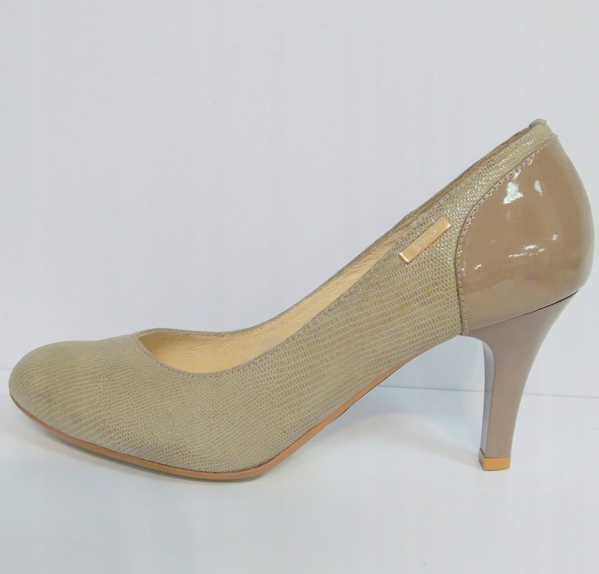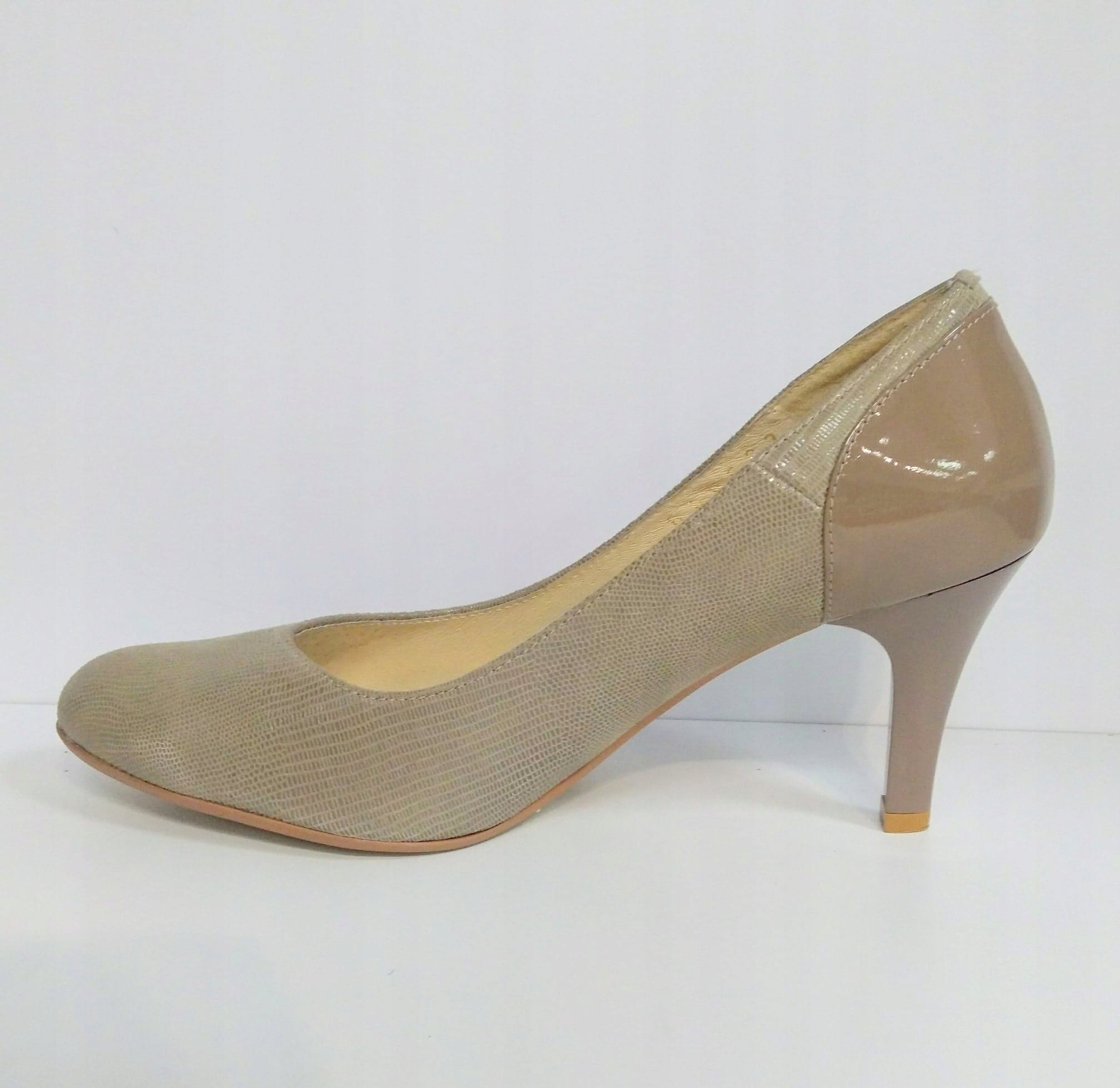 EMIS JSL 6446 czółenka skóra BEŻ żmijka lakier r37